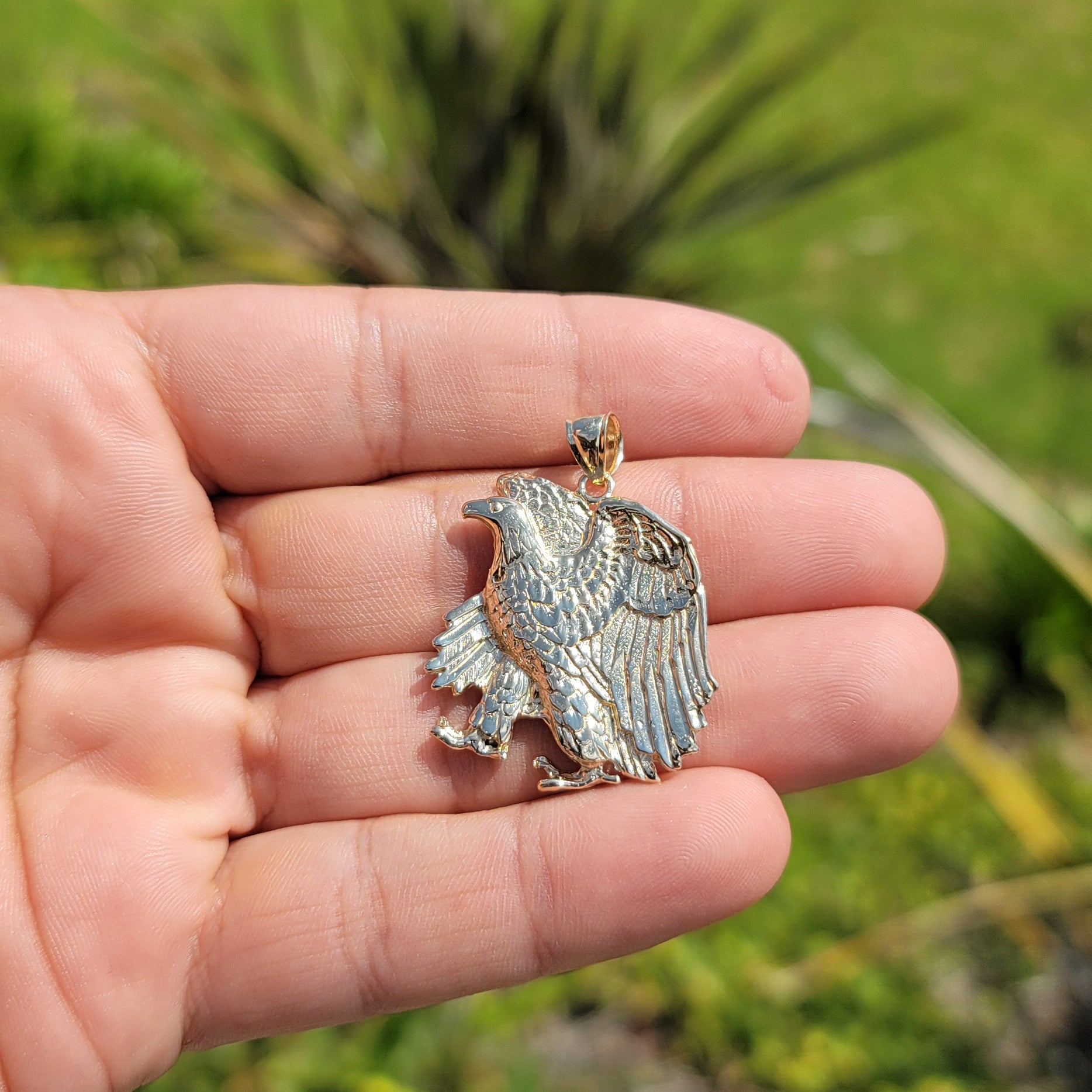Este es un impresionante colgante de águila de oro de 10K, 14K o 18K. Este colgante de oro de 10K, 14K o 18K mide 40 mm de largo por 30 mm de ancho. La medida incluye fardo. JewelsObsession crea todas las joyas de oro en nuestras instalaciones de fabricación de última generación.