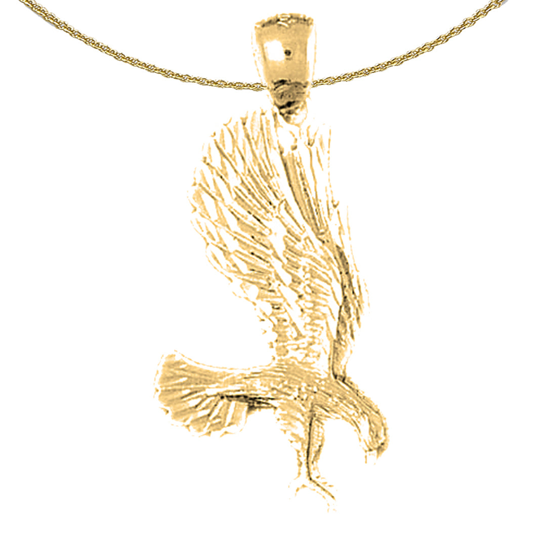Este precioso colgante de águila de oro de 10K, 14K o 18K. Este colgante de oro de 10 quilates, 14 quilates o 18 quilates mide 40 mm de largo por 18 mm de ancho. La medida incluye fardo. JewelsObsession crea todas las joyas de oro en nuestras instalaciones de fabricación de última generación.
