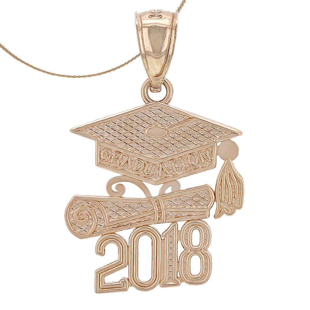 Colgante con birrete de graduación y diploma (con el año actual) en oro de 14 quilates o 18 quilates