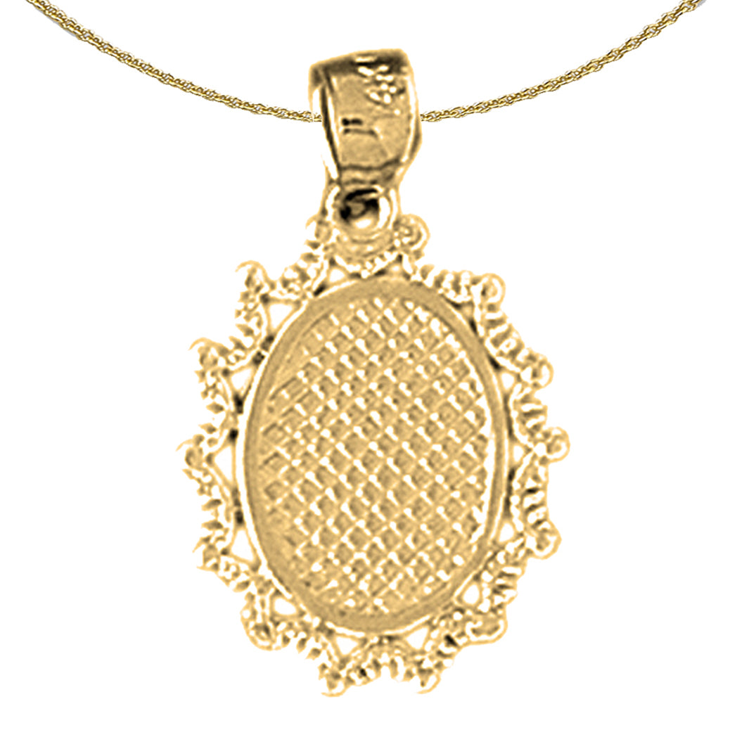 Este magnífico colgante con placa de marco cortada a mano en oro de 14K o 18K. Este colgante de oro de 14 quilates o 18 quilates mide 22 mm de largo por 13 mm de ancho. La medida incluye fardo. JewelsObsession crea todas las joyas de oro en nuestras instalaciones de fabricación de última generación.
