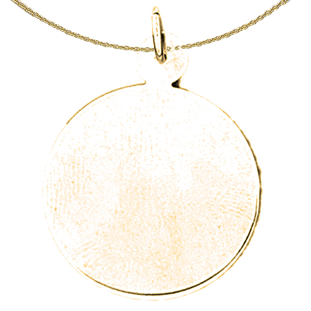 Este precioso colgante redondo cortado a mano en oro de 14K o 18K. Este colgante de oro de 14 quilates o 18 quilates mide 29 mm de largo por 22 mm de ancho. La medida incluye fardo. JewelsObsession crea todas las joyas de oro en nuestras instalaciones de fabricación de última generación.