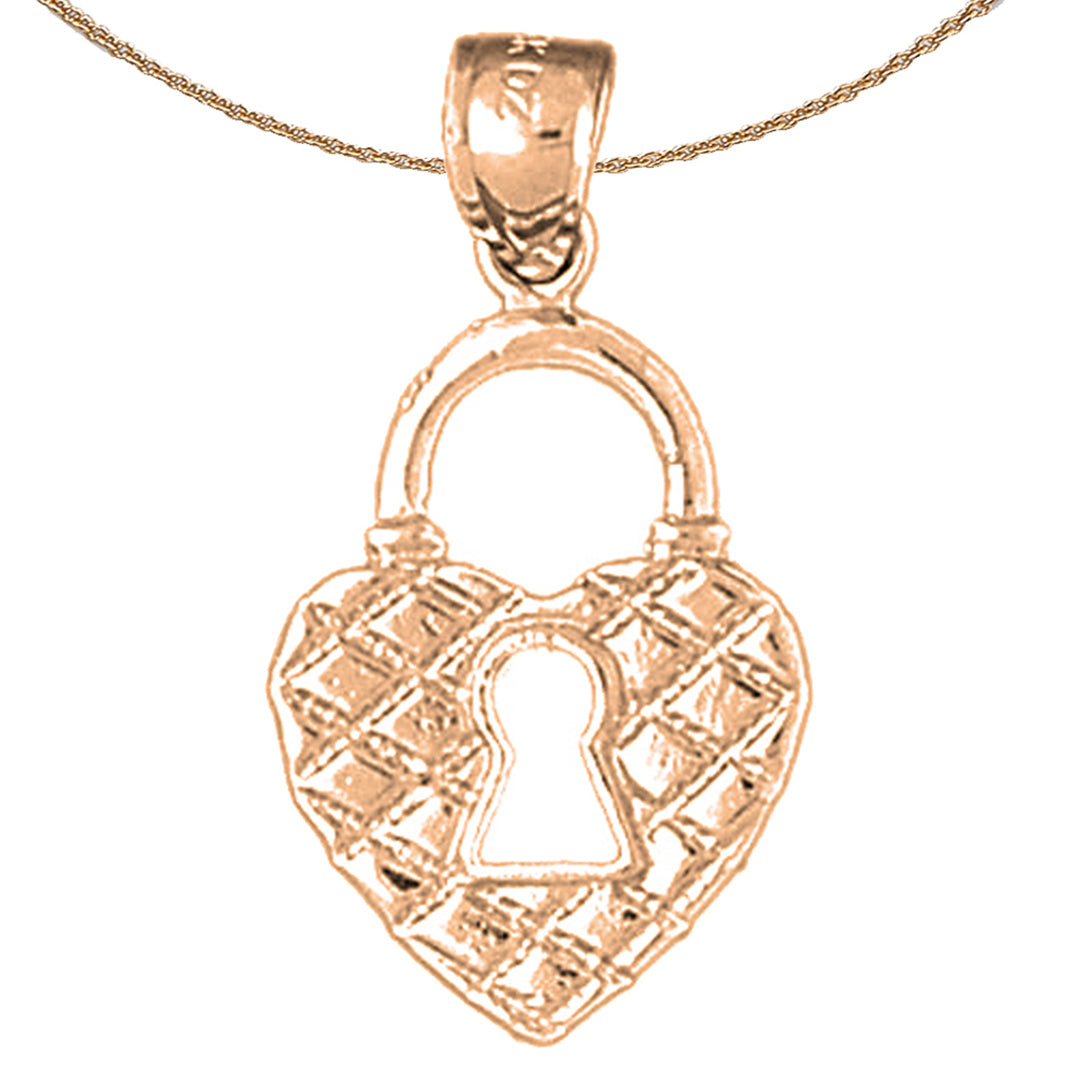 10K, 14K or 18K Gold Heart Padlock, Lock Pendant
