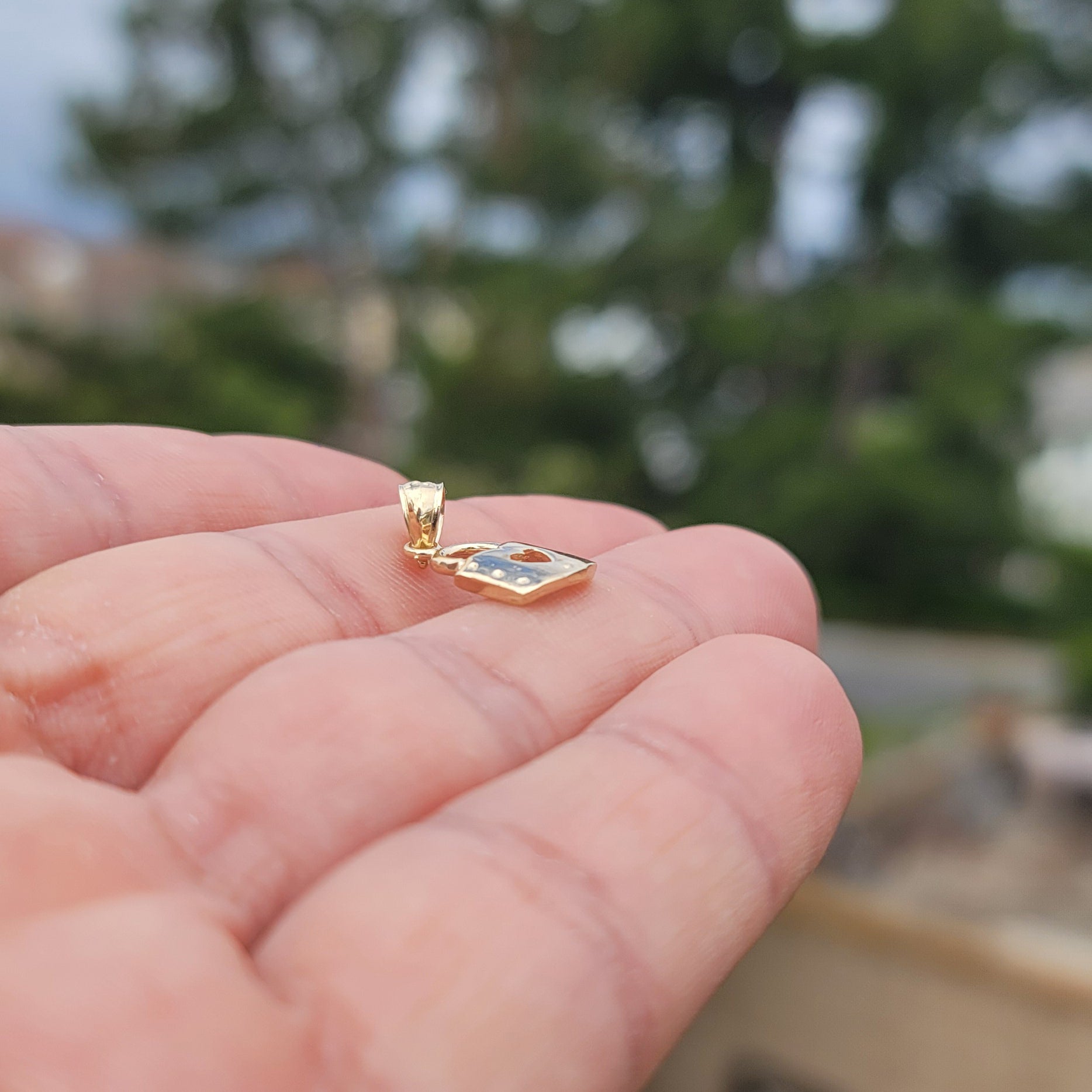 Este es un hermoso candado de corazón de oro de 14K o 18K, colgante de candado. Este colgante de oro de 14 quilates o 18 quilates mide 19 mm de largo por 9 mm de ancho. La medida incluye fardo. JewelsObsession crea todas las joyas de oro en nuestras instalaciones de fabricación de última generación.
