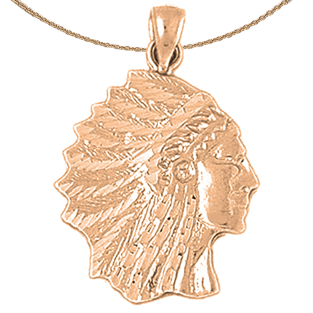Colgante de cabeza de indio en oro de 10 quilates, 14 quilates o 18 quilates
