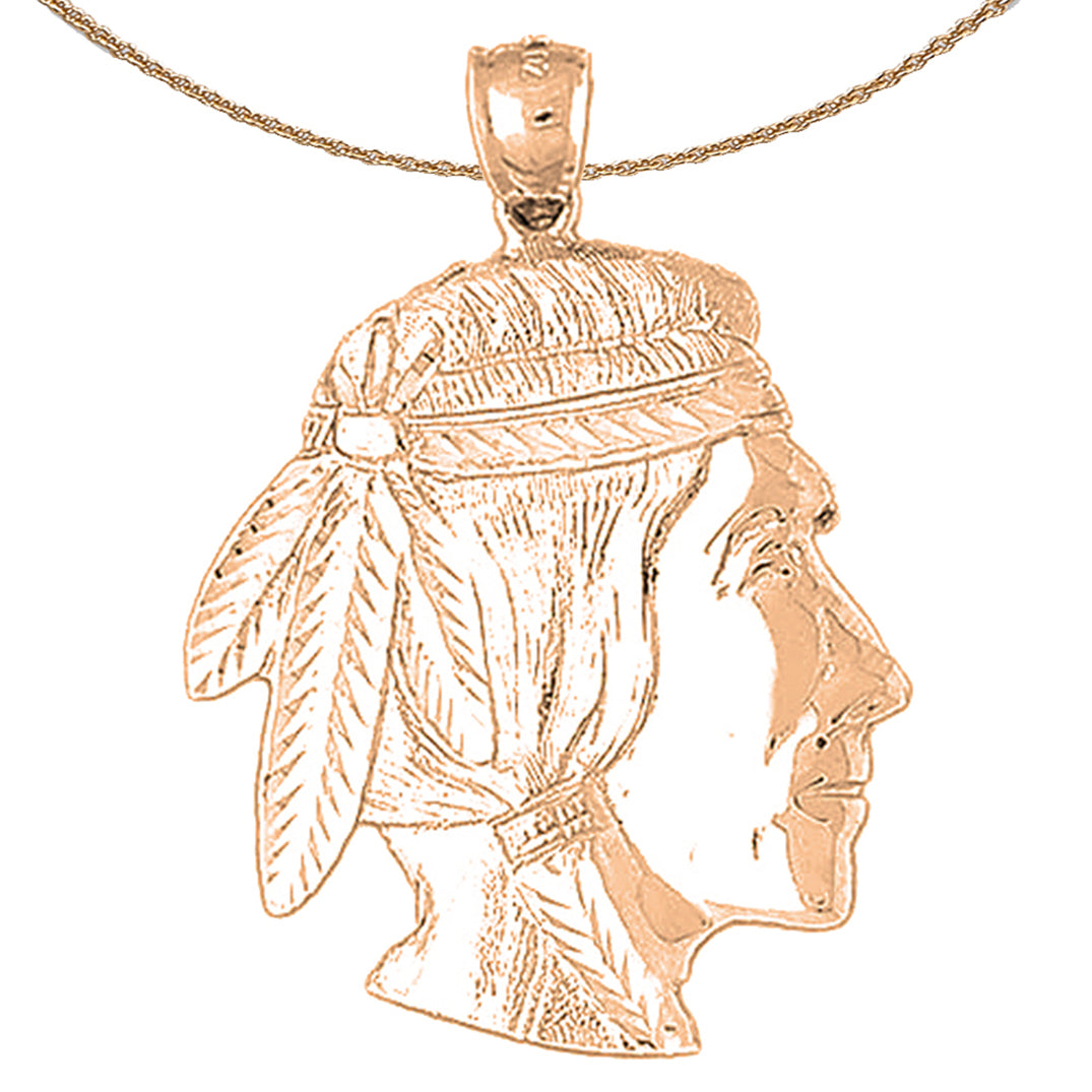 Colgante de cabeza de indio en oro de 10 quilates, 14 quilates o 18 quilates