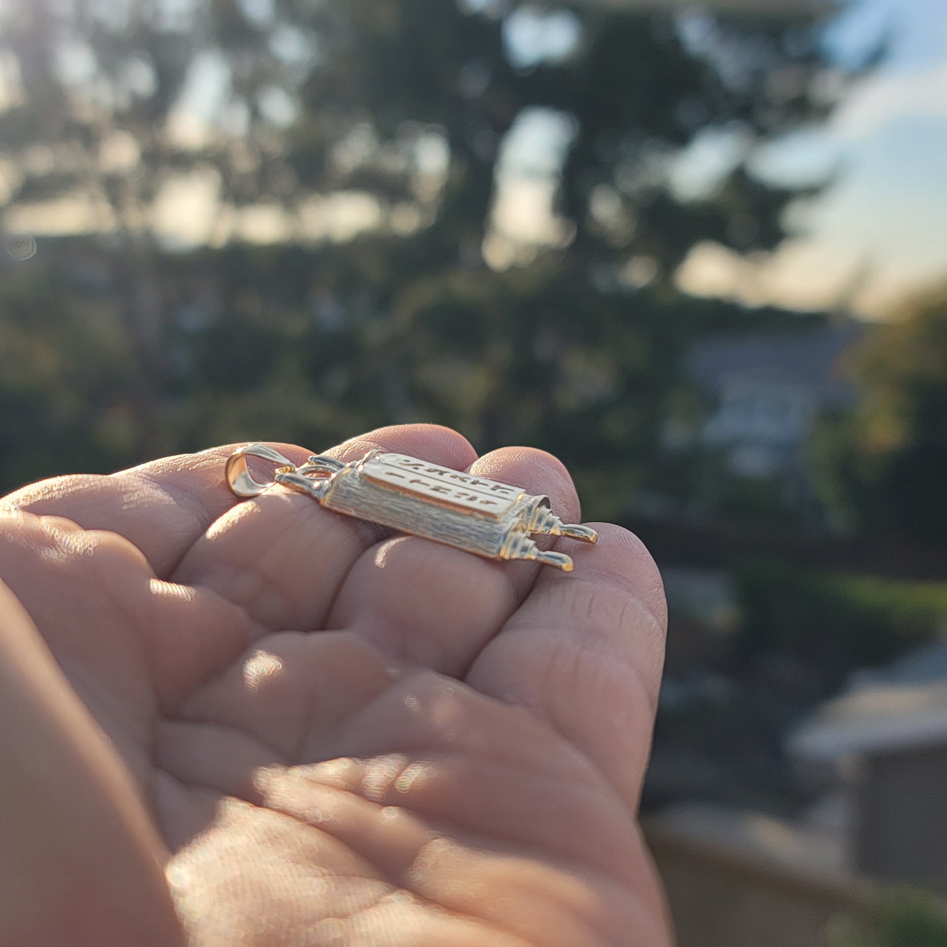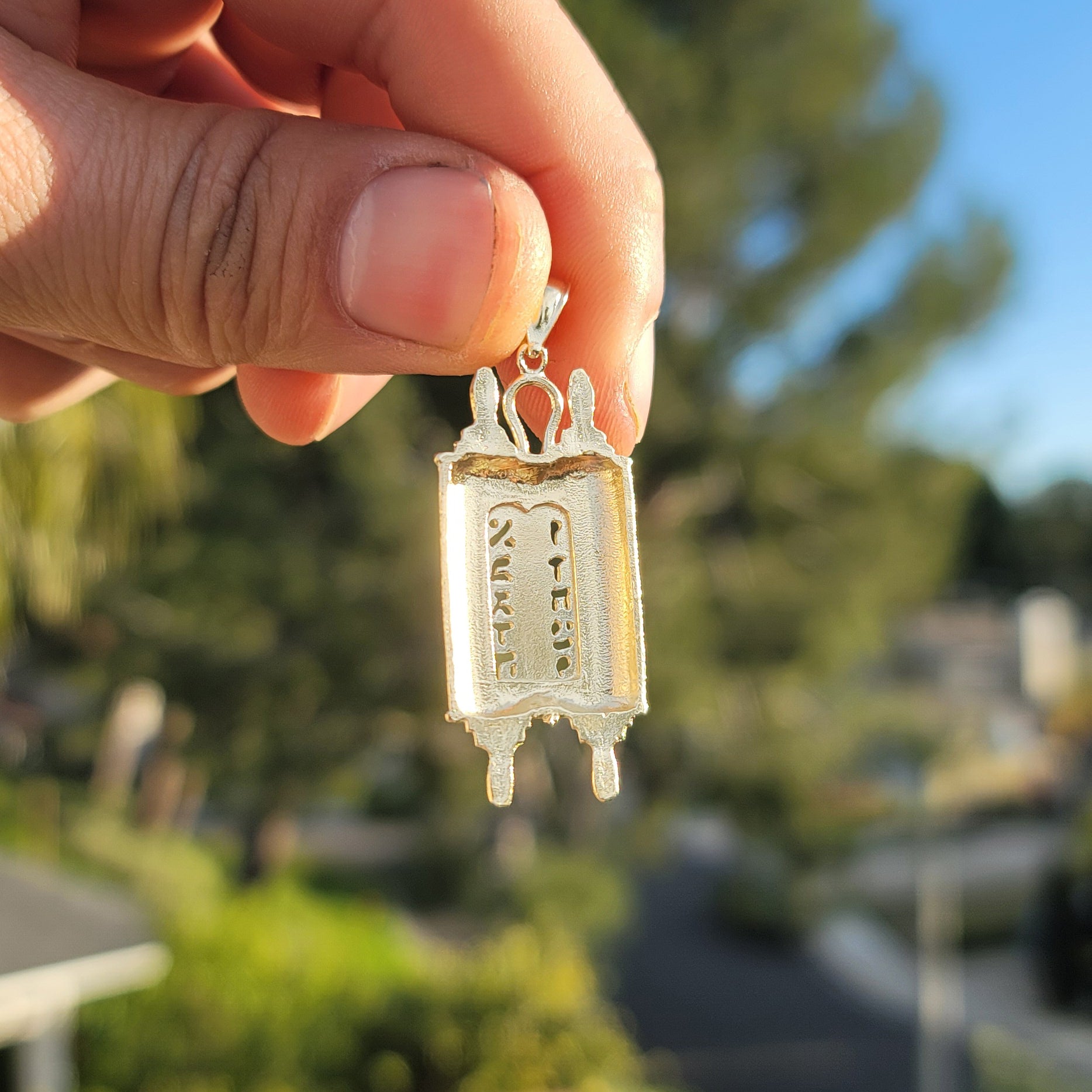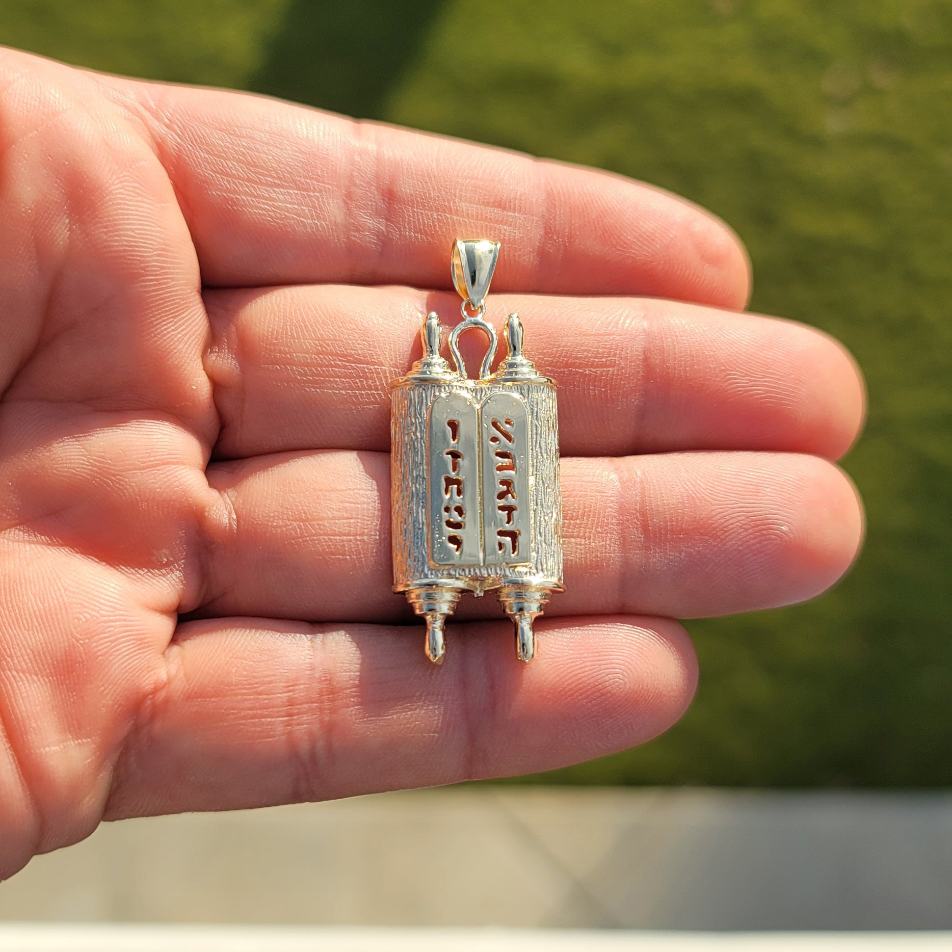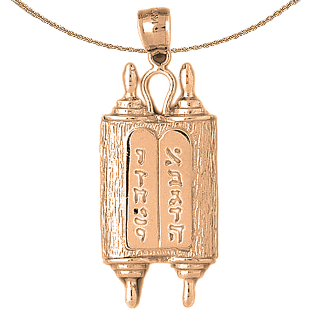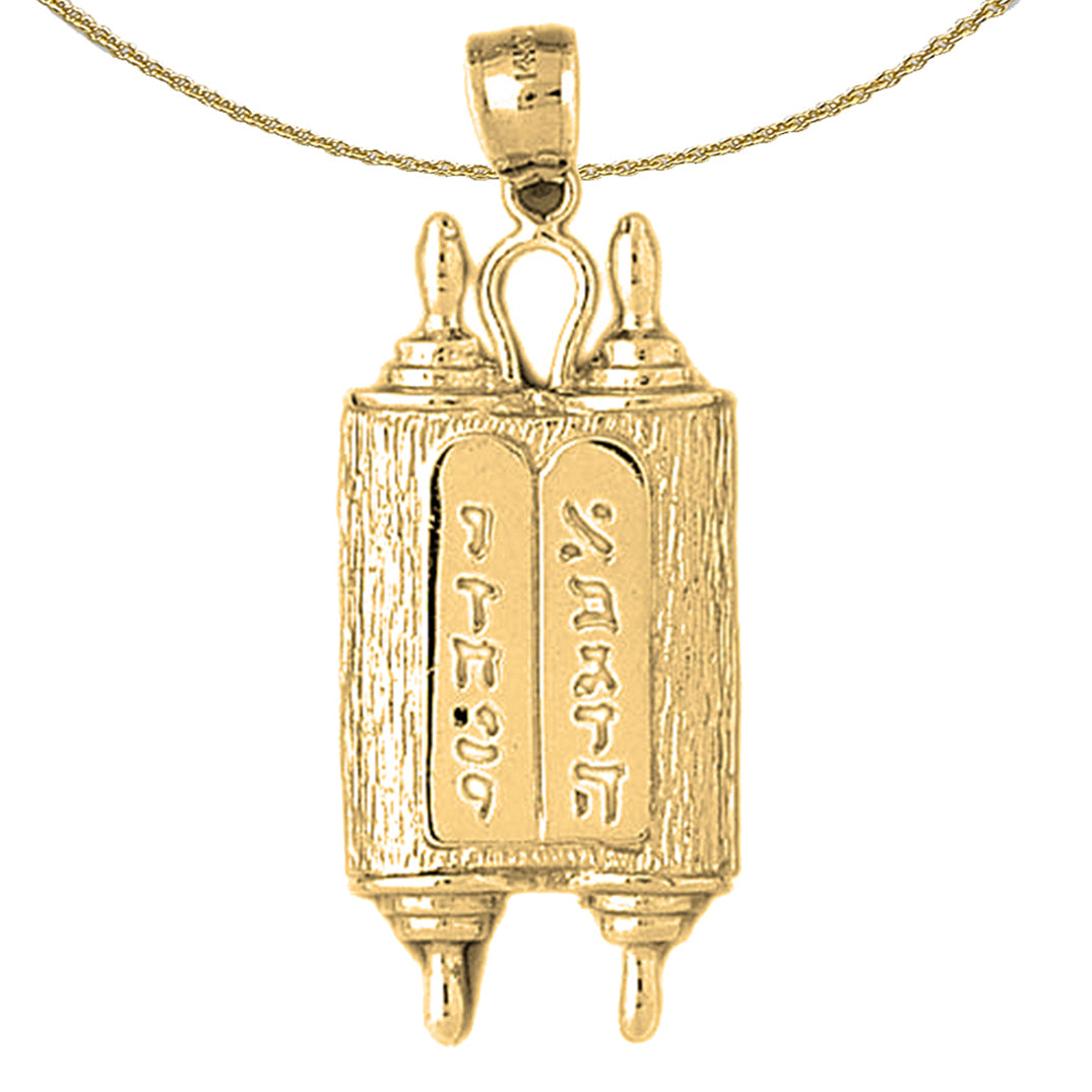 10K, 14K or 18K Gold Jewish Torah Scroll with Commandments Pendant