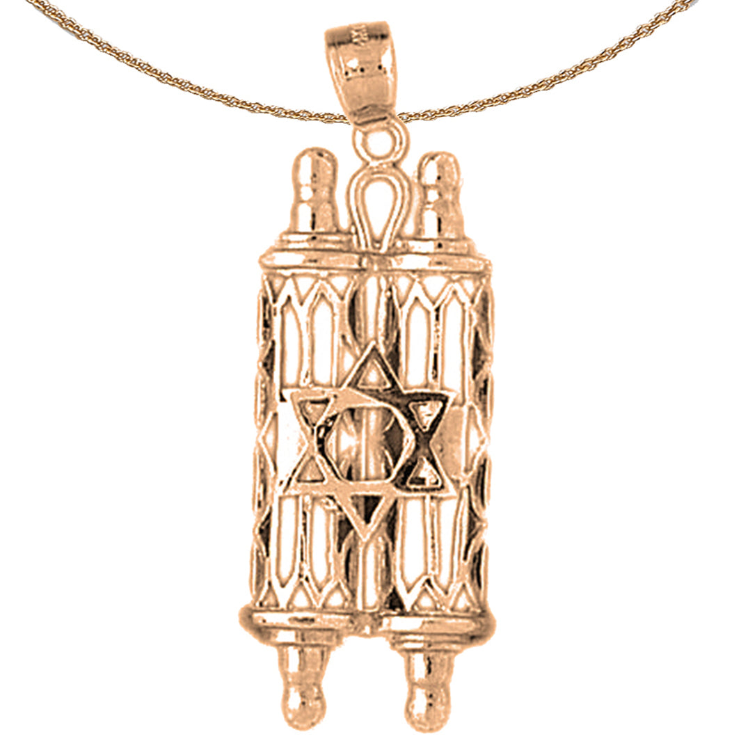 10K, 14K or 18K Gold Jewish Torah Scroll with Star Pendant