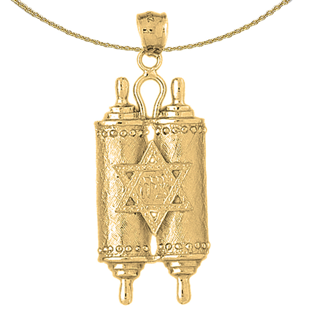 10K, 14K or 18K Gold Jewish Torah Scroll with Star Pendant