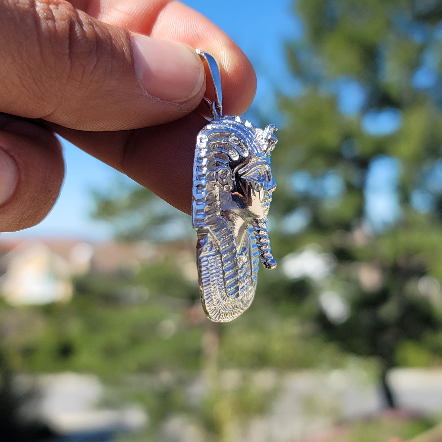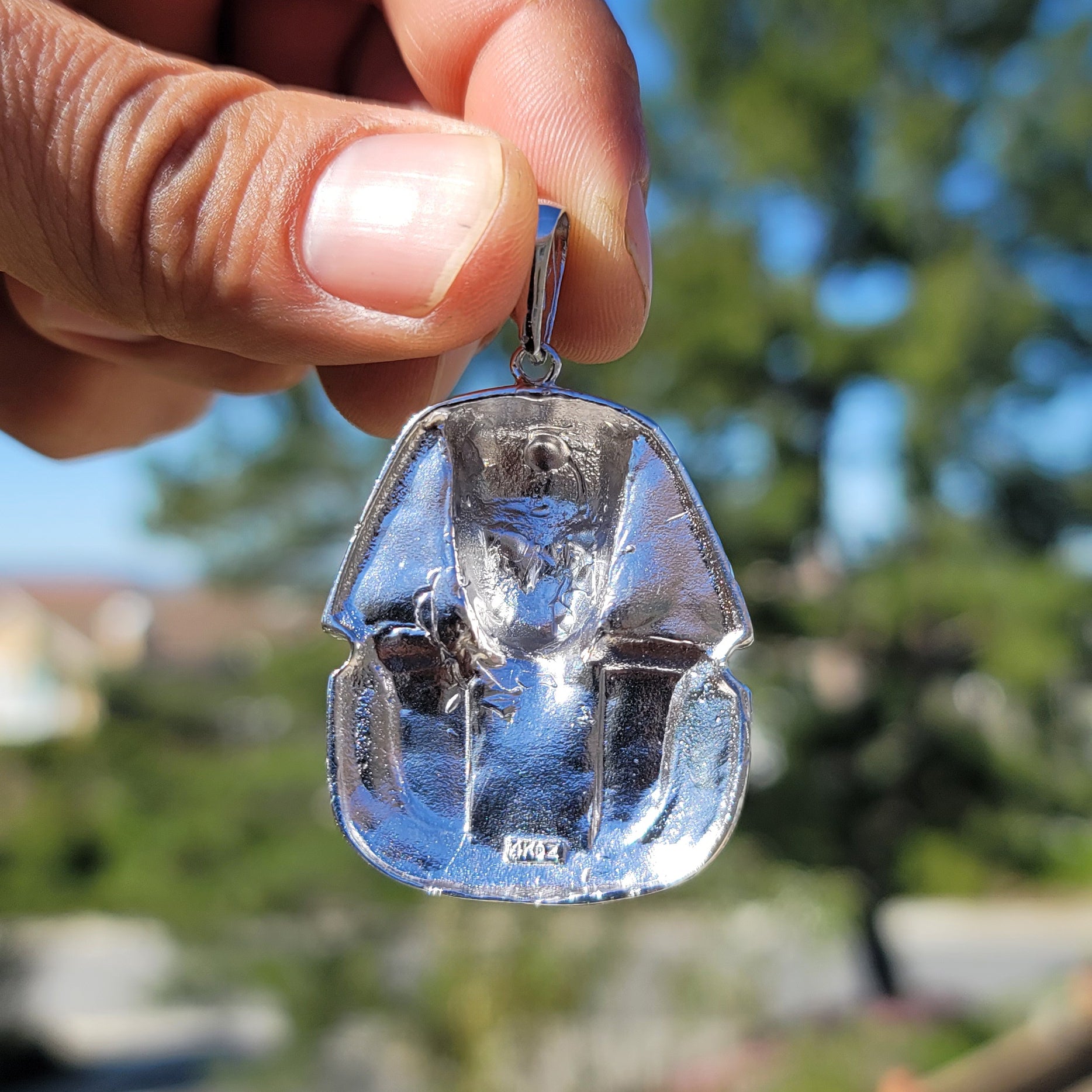 Este es un hermoso colgante King Tut de oro de 10K, 14K o 18K. Este colgante de oro de 10 quilates, 14 quilates o 18 quilates mide 53 mm de largo por 35 mm de ancho. La medida incluye fardo. JewelsObsession crea todas las joyas de oro en nuestras instalaciones de fabricación de última generación.
