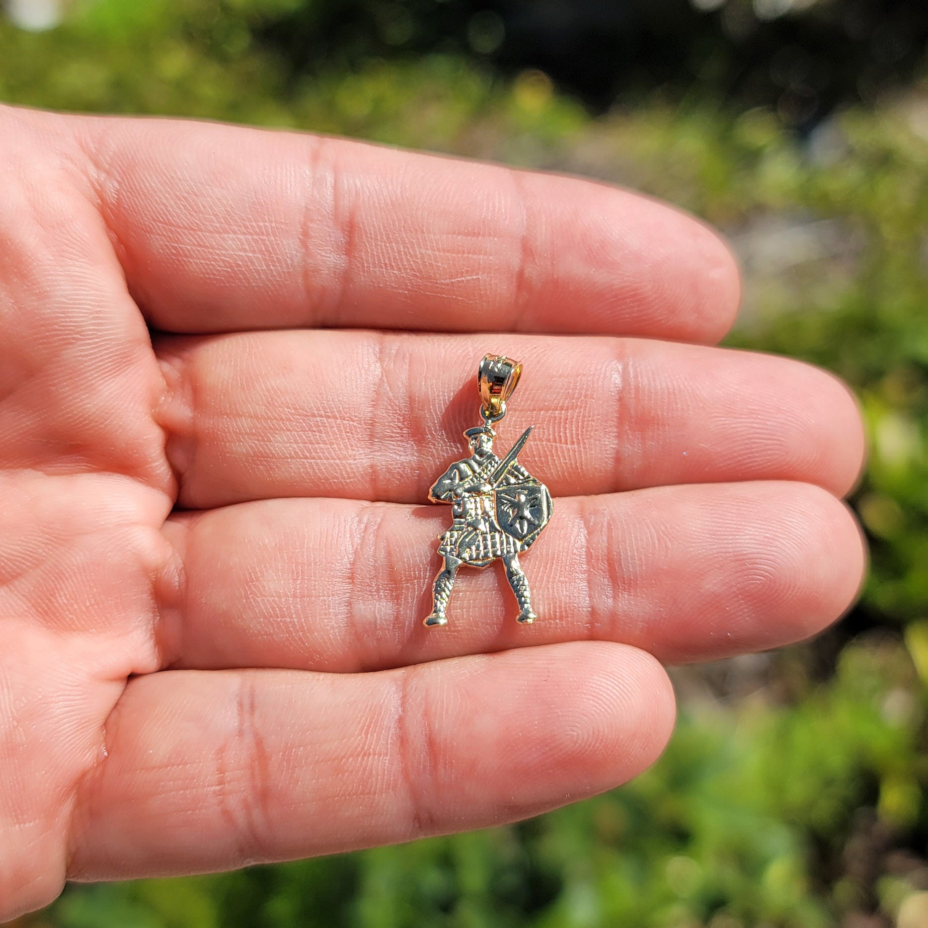 14K or 18K Gold Knight with Sword & Shield Pendant