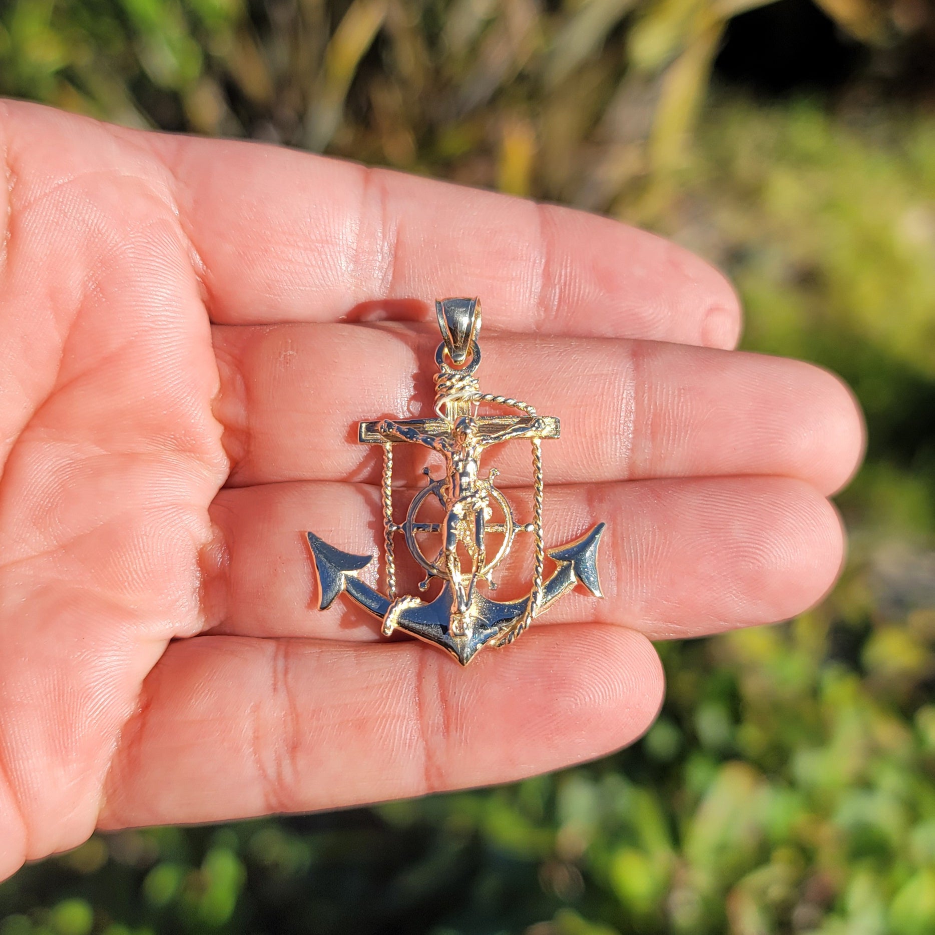 10K, 14K or 18K Gold Mariners Cross/Crucifix Pendant