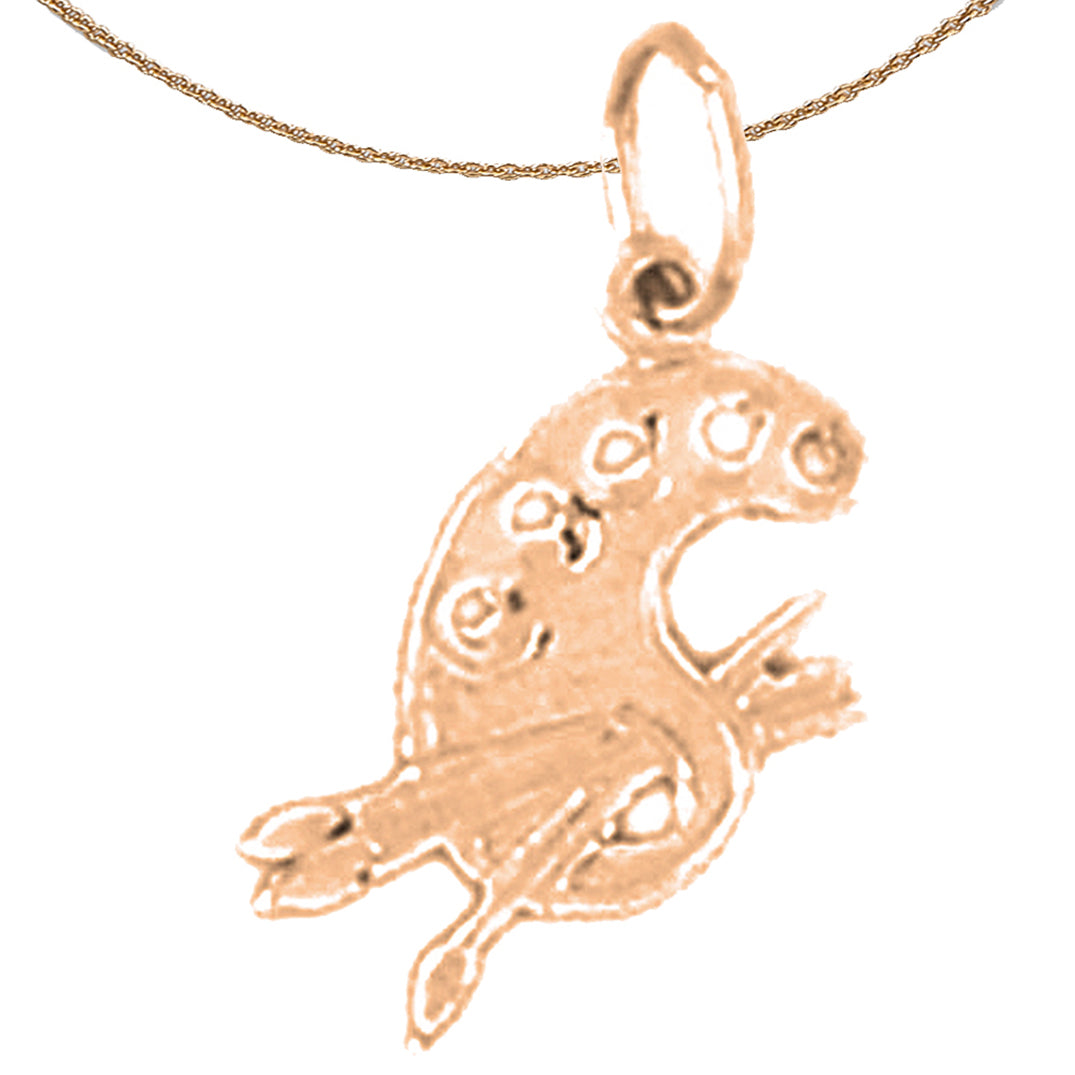 Este es un elegante colgante de paleta de pintores de oro de 14K o 18K. Este colgante de oro de 14 quilates o 18 quilates mide 17 mm de largo por 11 mm de ancho. La medida incluye fardo. JewelsObsession crea todas las joyas de oro en nuestras instalaciones de fabricación de última generación.