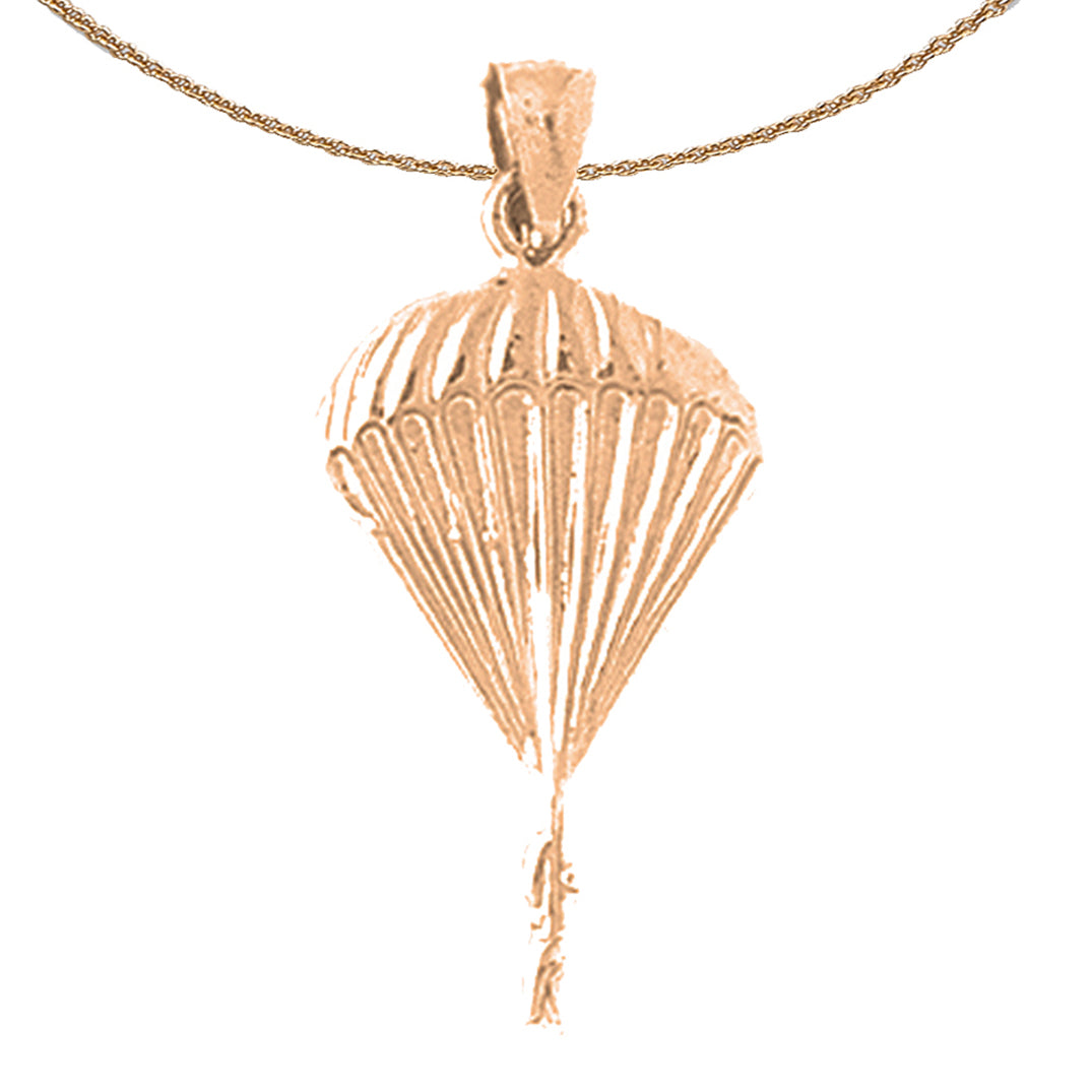 Este es un hermoso colgante de paracaídas de oro de 14K o 18K. Este colgante de oro de 14 quilates o 18 quilates mide 28 mm de largo por 13 mm de ancho. La medida incluye fardo. JewelsObsession crea todas las joyas de oro en nuestras instalaciones de fabricación de última generación.