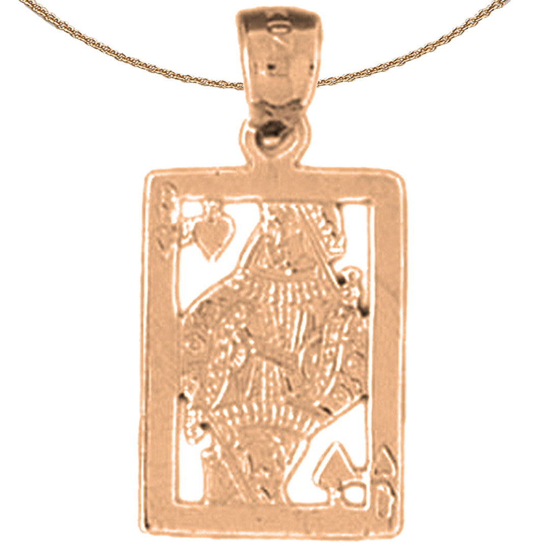 Naipes de oro de 14K o 18K, colgante Reina de Corazones