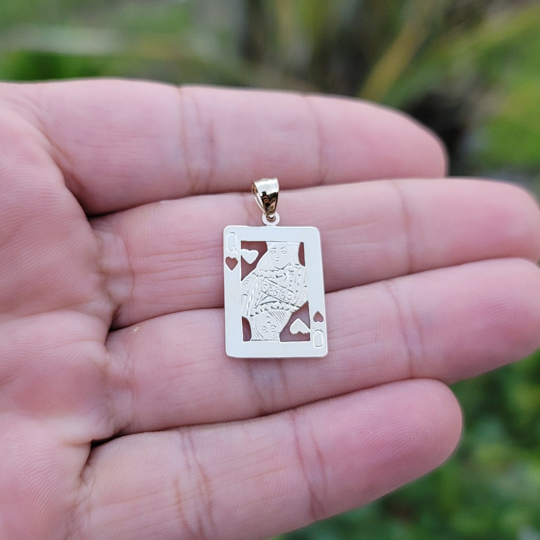 10K, 14K or 18K Gold Playing Cards, Queen Of Hearts Pendant
