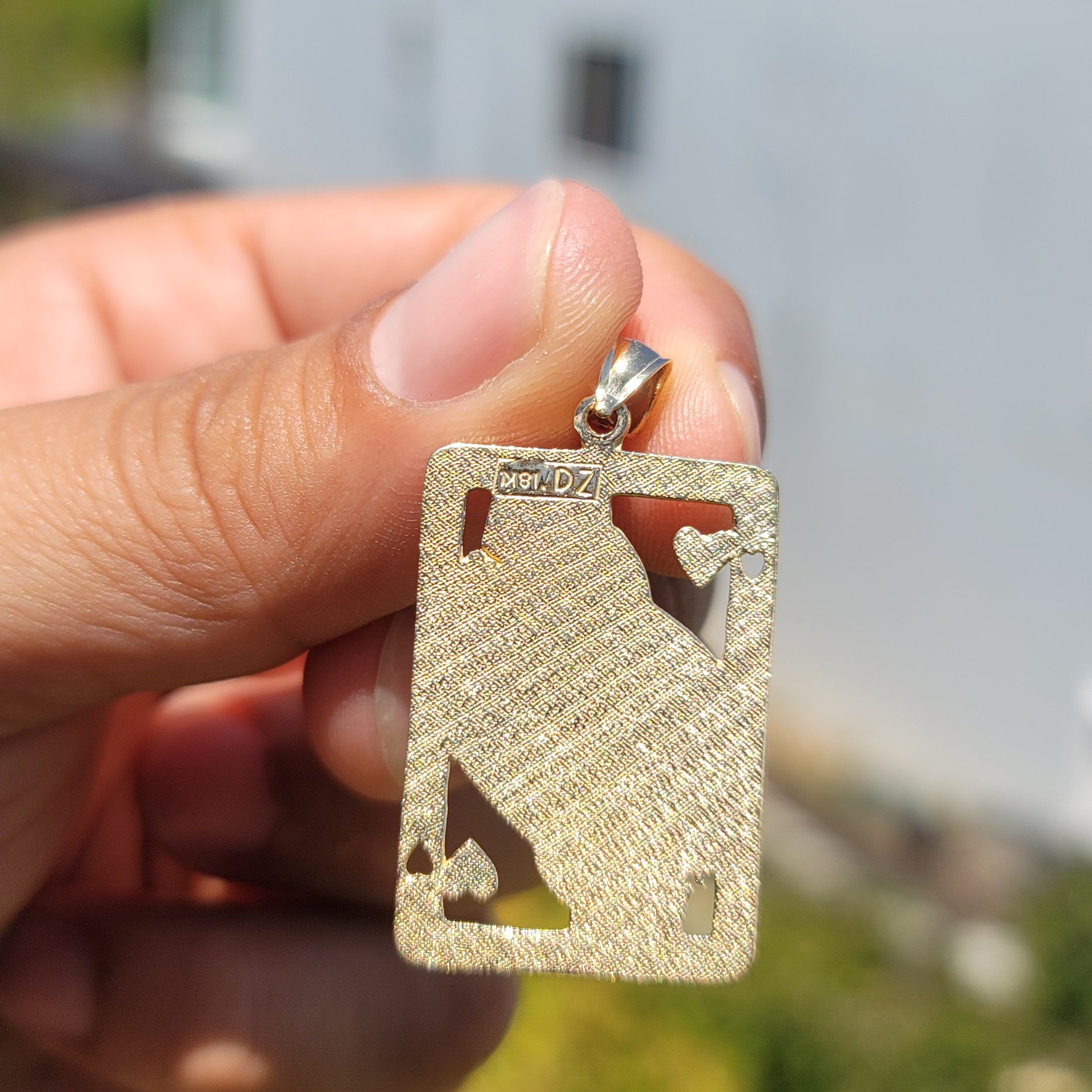 Este es un impresionante colgante de reina de corazones de naipes de oro de 10K, 14K o 18K. Este colgante de oro de 10K, 14K o 18K mide de largo por ancho. La medida incluye fardo. JewelsObsession crea todas las joyas de oro en nuestras instalaciones de fabricación de última generación.