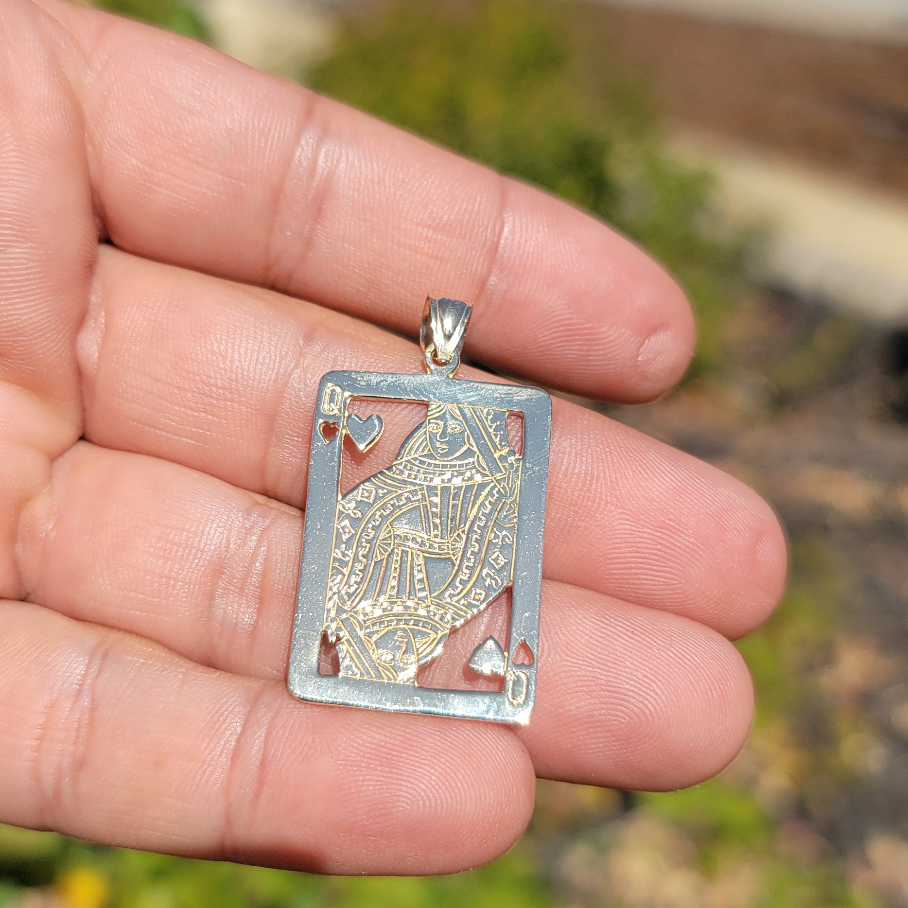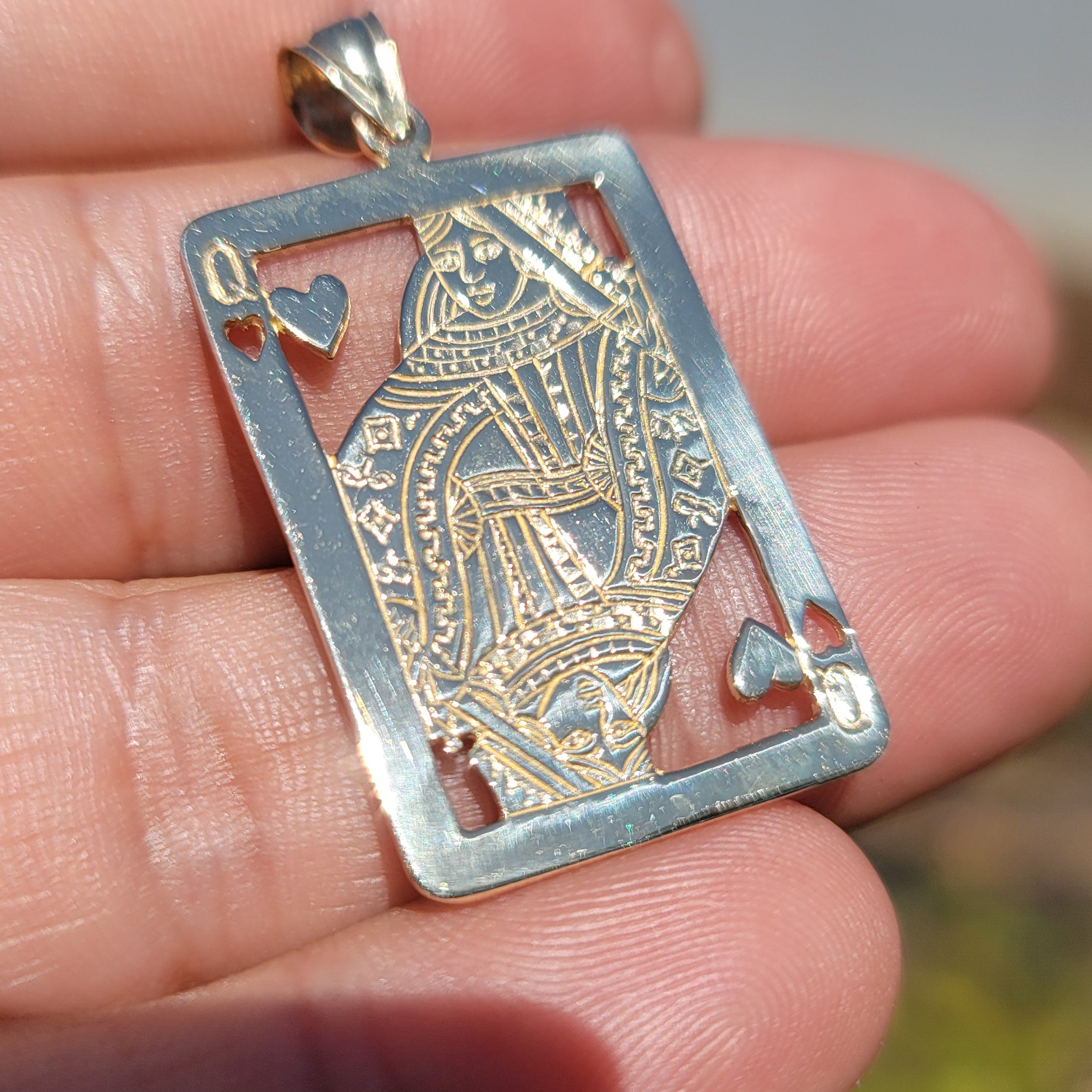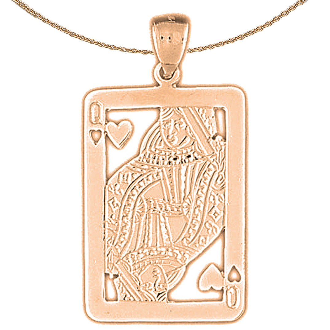 10K, 14K or 18K Gold Playing Cards, Queen Of Hearts Pendant