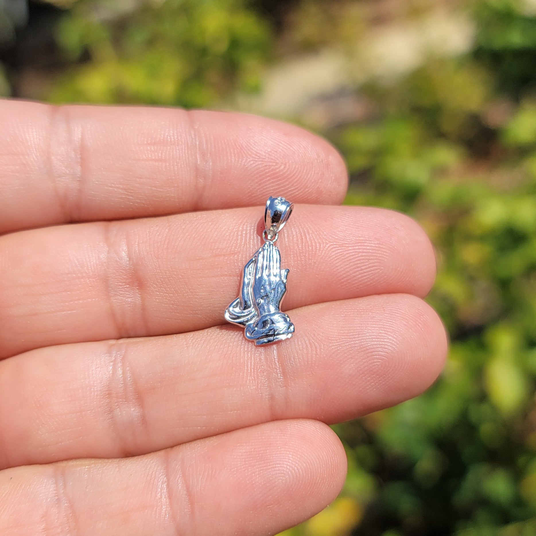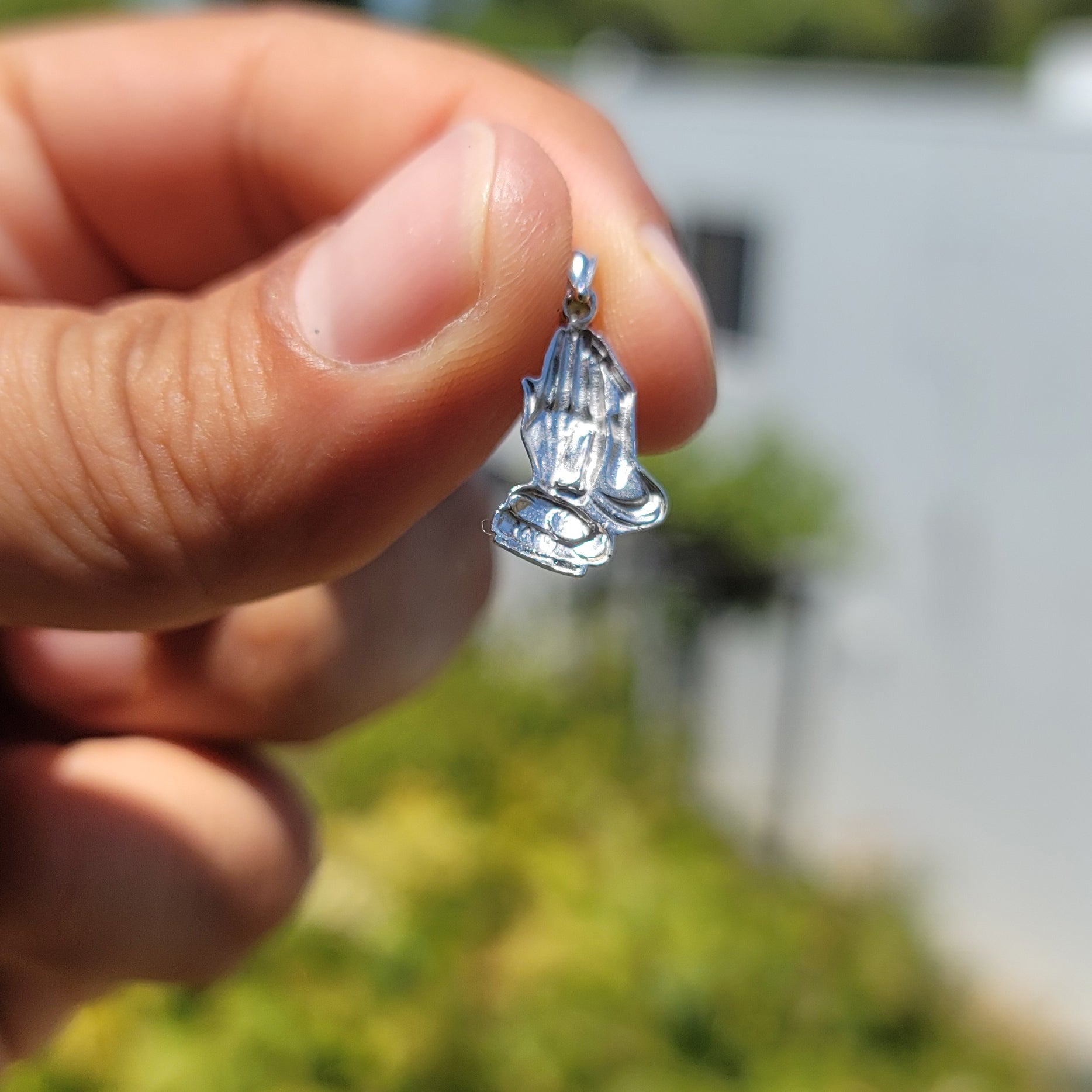 Colgante de manos orando en oro de 14 quilates o 18 quilates