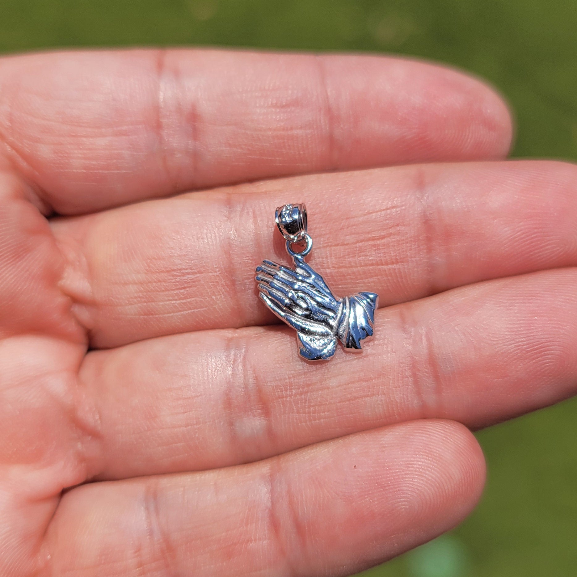 Colgante de manos orando en oro de 14 quilates o 18 quilates