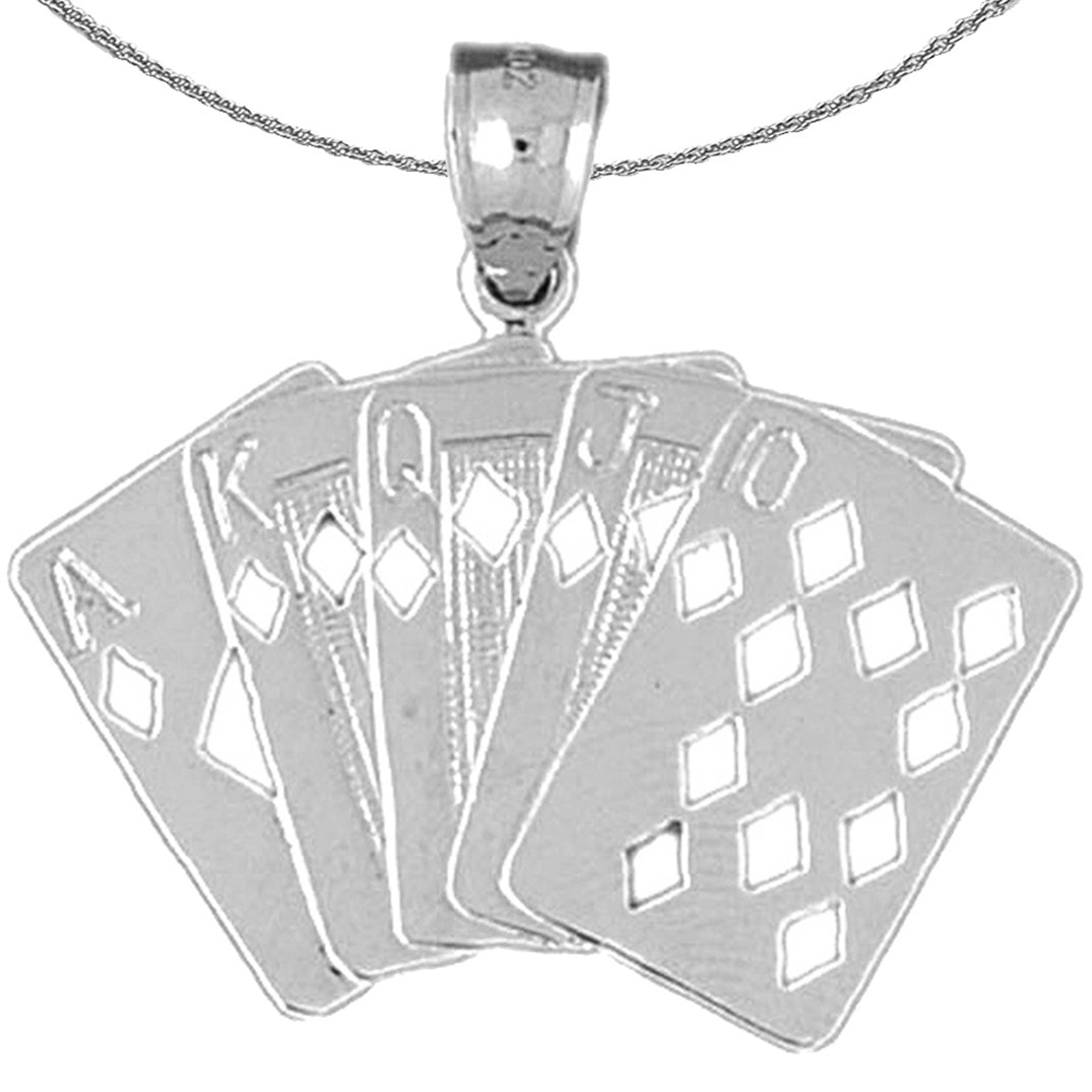 Este magnífico colgante empotrado de naipes de oro de 10K, 14K o 18K. Este colgante de oro de 10K, 14K o 18K mide de largo por ancho. La medida incluye fardo. JewelsObsession crea todas las joyas de oro en nuestras instalaciones de fabricación de última generación.