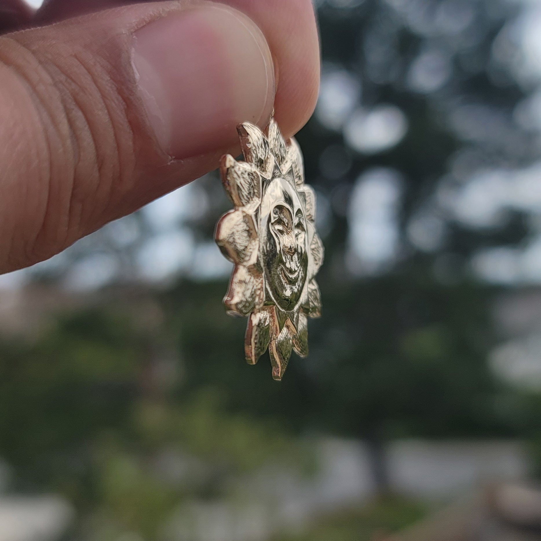 Este es un impresionante colgante de sol de oro de 10K, 14K o 18K. Este colgante de oro de 10 quilates, 14 quilates o 18 quilates mide 41 mm de largo por 32 mm de ancho. La medida incluye fardo. JewelsObsession crea todas las joyas de oro en nuestras instalaciones de fabricación de última generación.