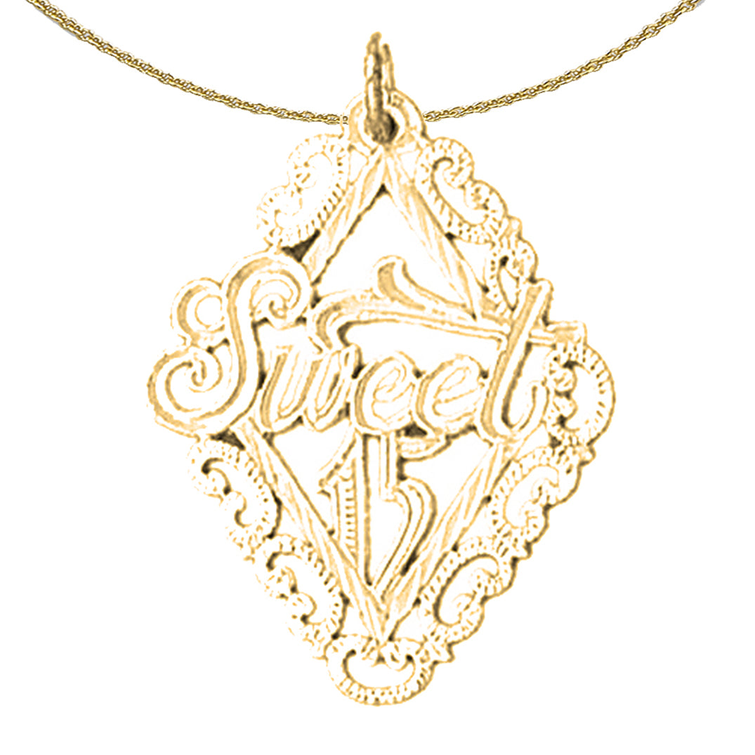 Este es un hermoso colgante dulce 15 de oro de 14K o 18K. Este colgante de oro de 14 quilates o 18 quilates mide de largo por ancho. La medida incluye fardo. JewelsObsession crea todas las joyas de oro en nuestras instalaciones de fabricación de última generación.