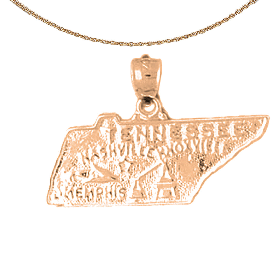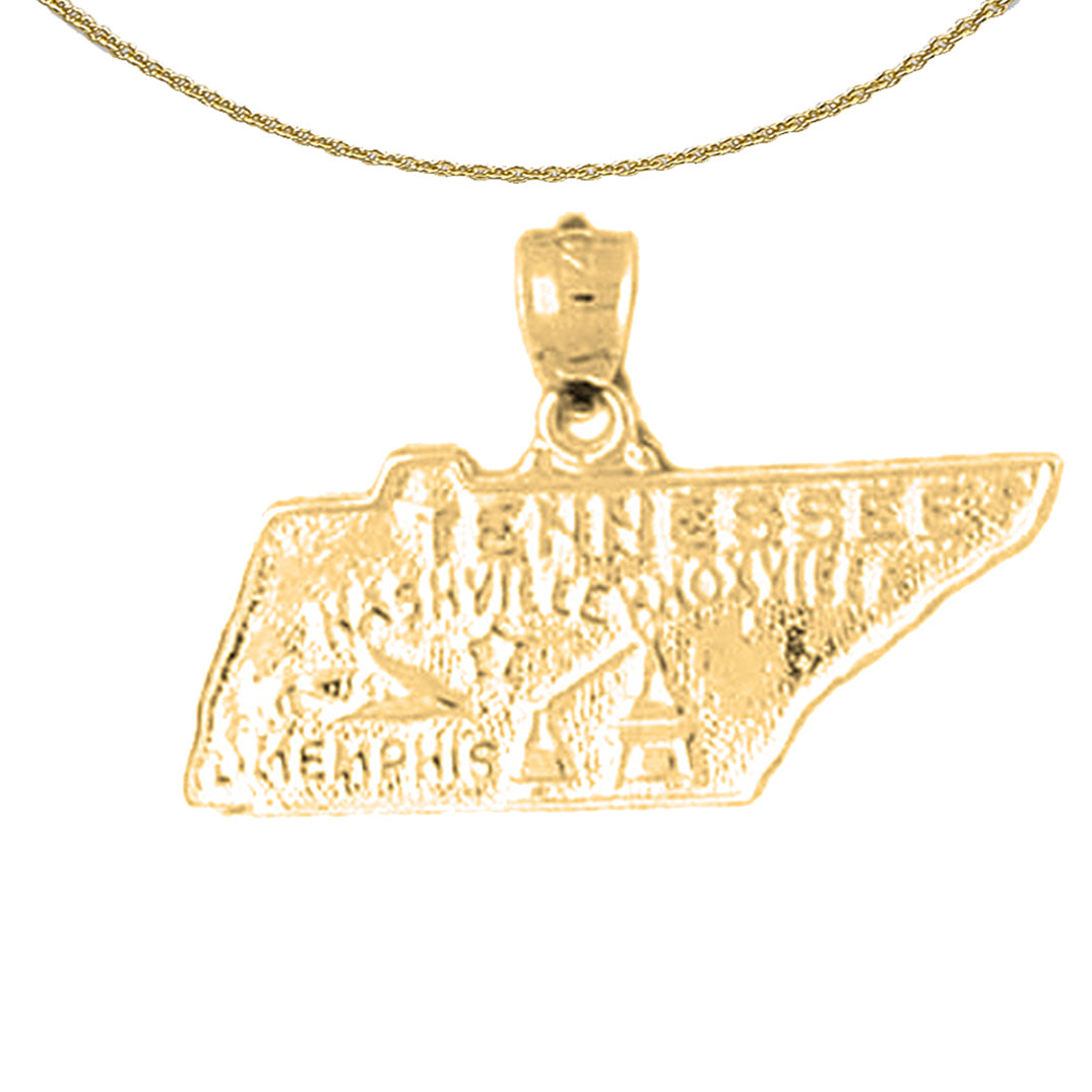 Colgante del estado de Tennessee de oro de 10 quilates, 14 quilates o 18 quilates