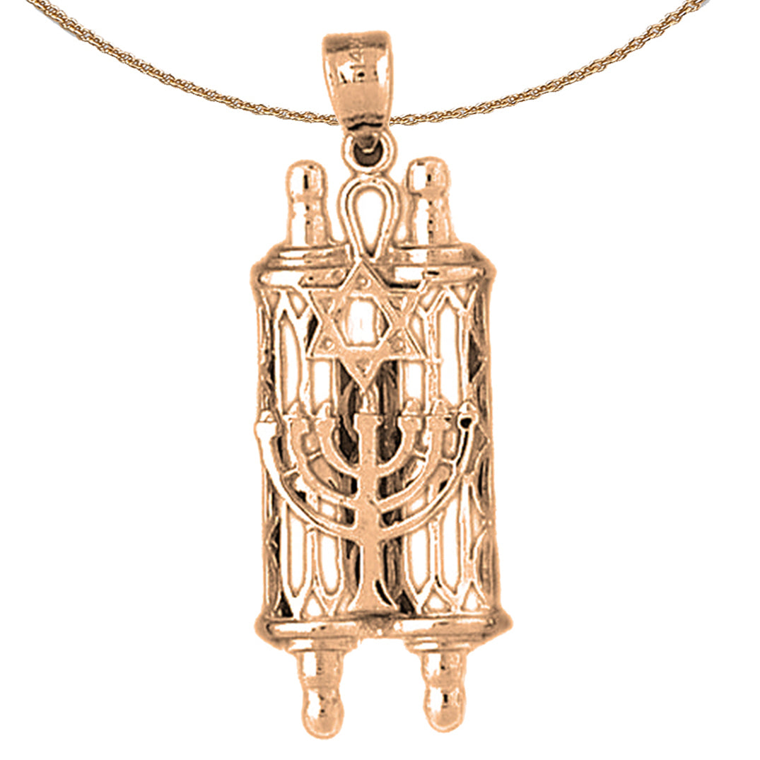Rollo de la Torá de oro de 10 K, 14 K o 18 K con colgante de estrella y menorá