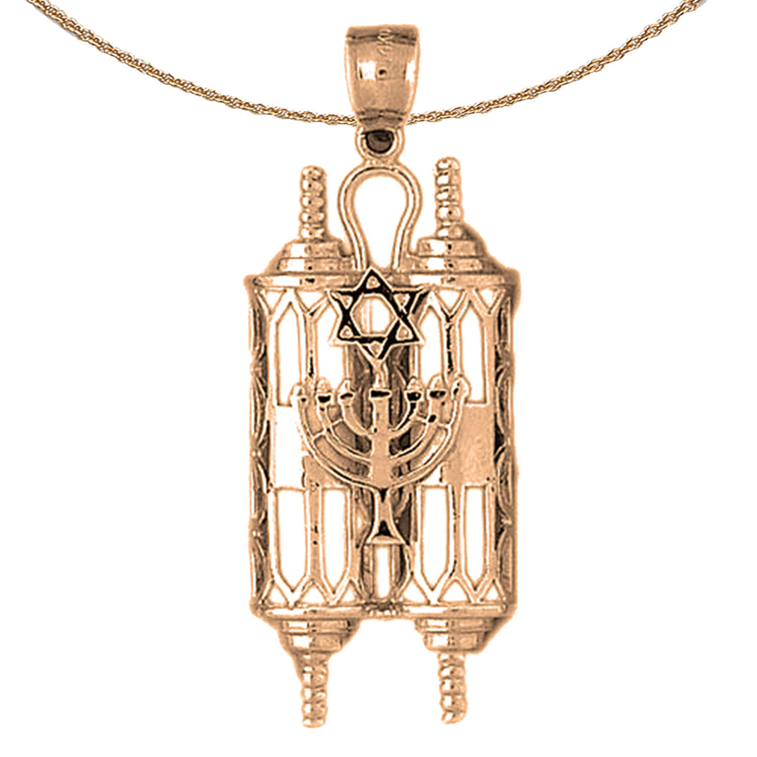 10K, 14K or 18K Gold Torah Scroll with Star & Menorah Pendant