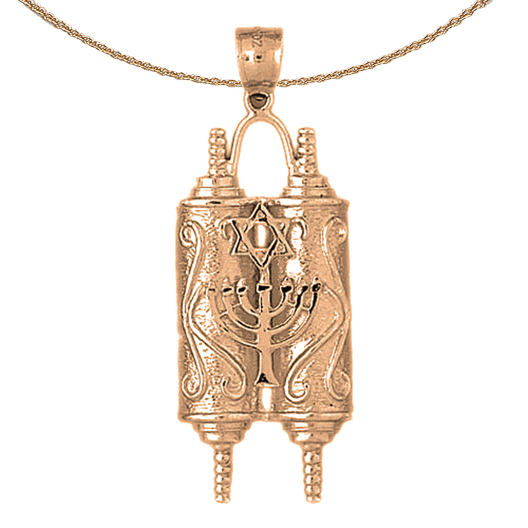 10K, 14K or 18K Gold Torah Scroll with Star & Menorah Pendant