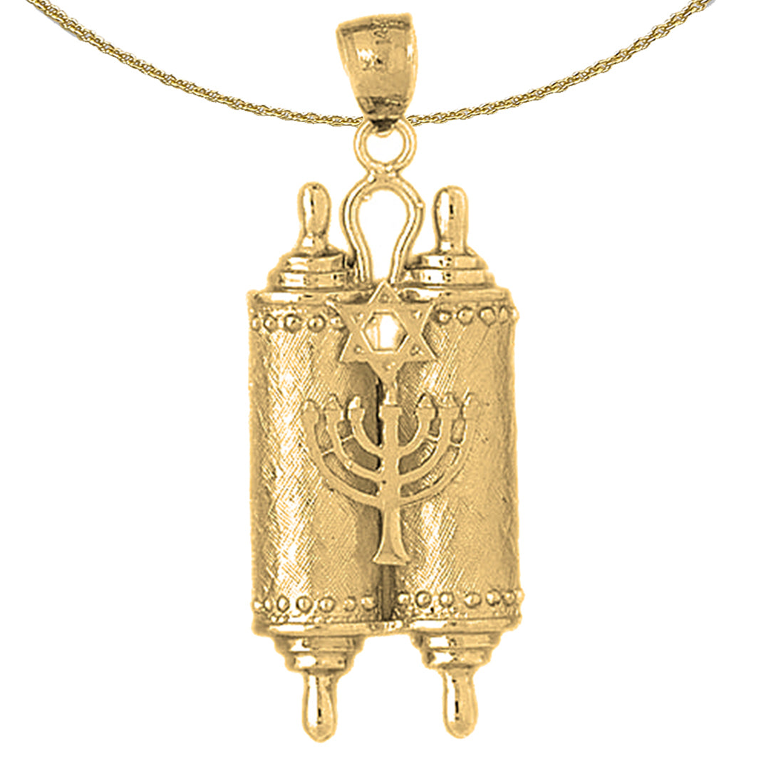 10K, 14K or 18K Gold Torah Scroll with Star & Menorah Pendant