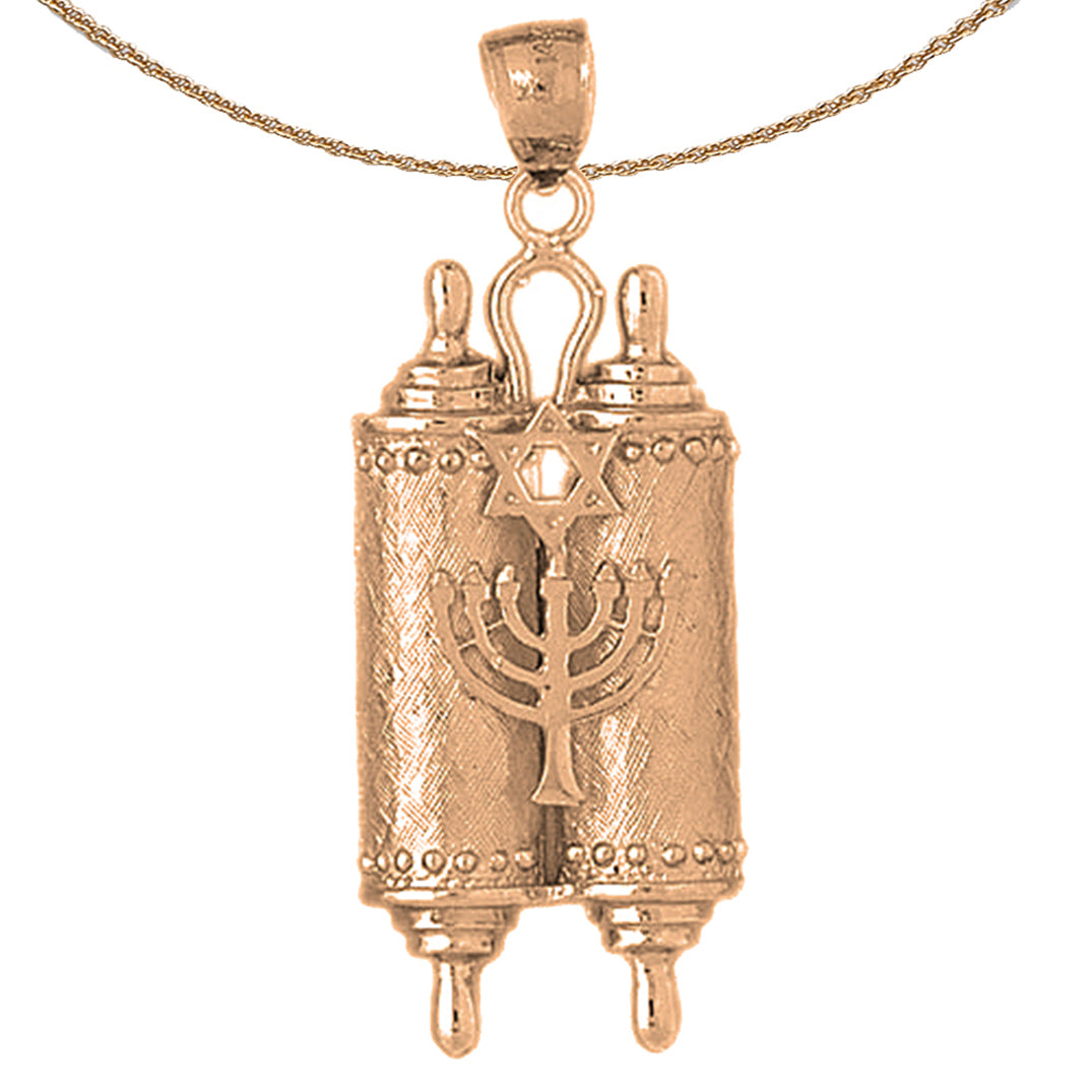 Rollo de la Torá de oro de 10 K, 14 K o 18 K con colgante de estrella y menorá