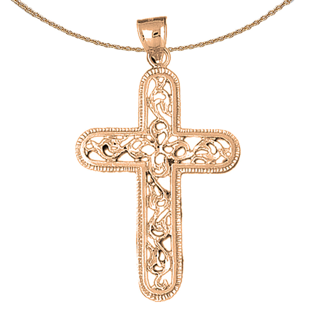 10K, 14K or 18K Gold Vine Cross Pendant