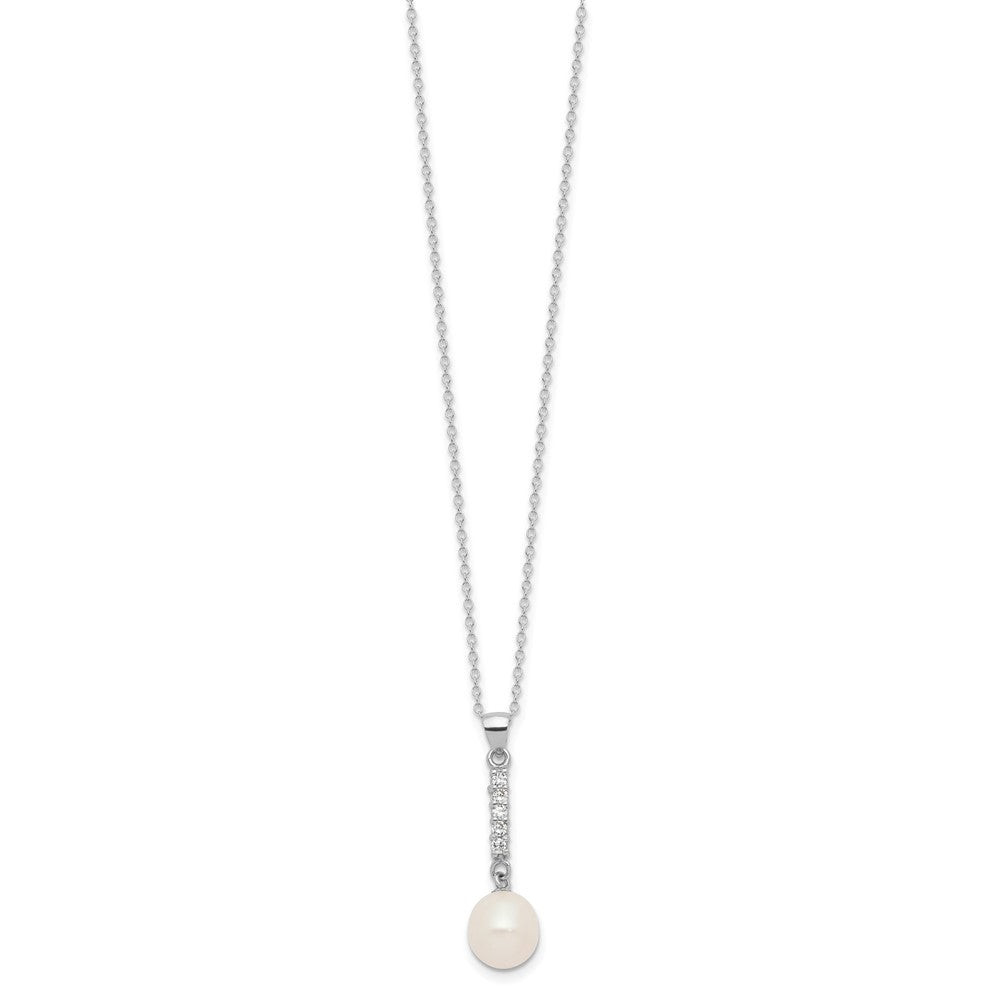 Rhodium-plated Silver FWC Pearl CZ 17in Necklace and Post Earrings Set