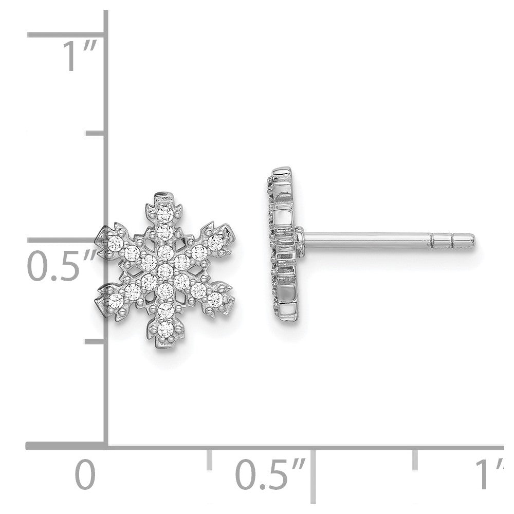 El delicado diseño de copo de nieve mide 9,8 mm x 9,8 mm, lo que lo convierte en el tamaño perfecto para añadir un toque de elegancia a cualquier conjunto. Brillantes piedras de circonita cúbica están meticulosamente engastadas dentro del copo de nieve, capturando la esencia de los relucientes copos de nieve en un gélido día de invierno.