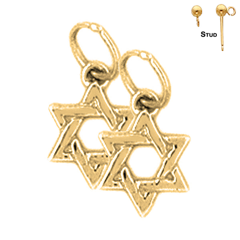 Presentamos nuestros impresionantes aretes con estrella de David de plata de ley de 14 mm, disponibles en opciones chapadas en oro blanco o amarillo. Elaborados con precisión y cuidado, estos aretes son un verdadero testimonio de la belleza del símbolo de la Estrella de David.