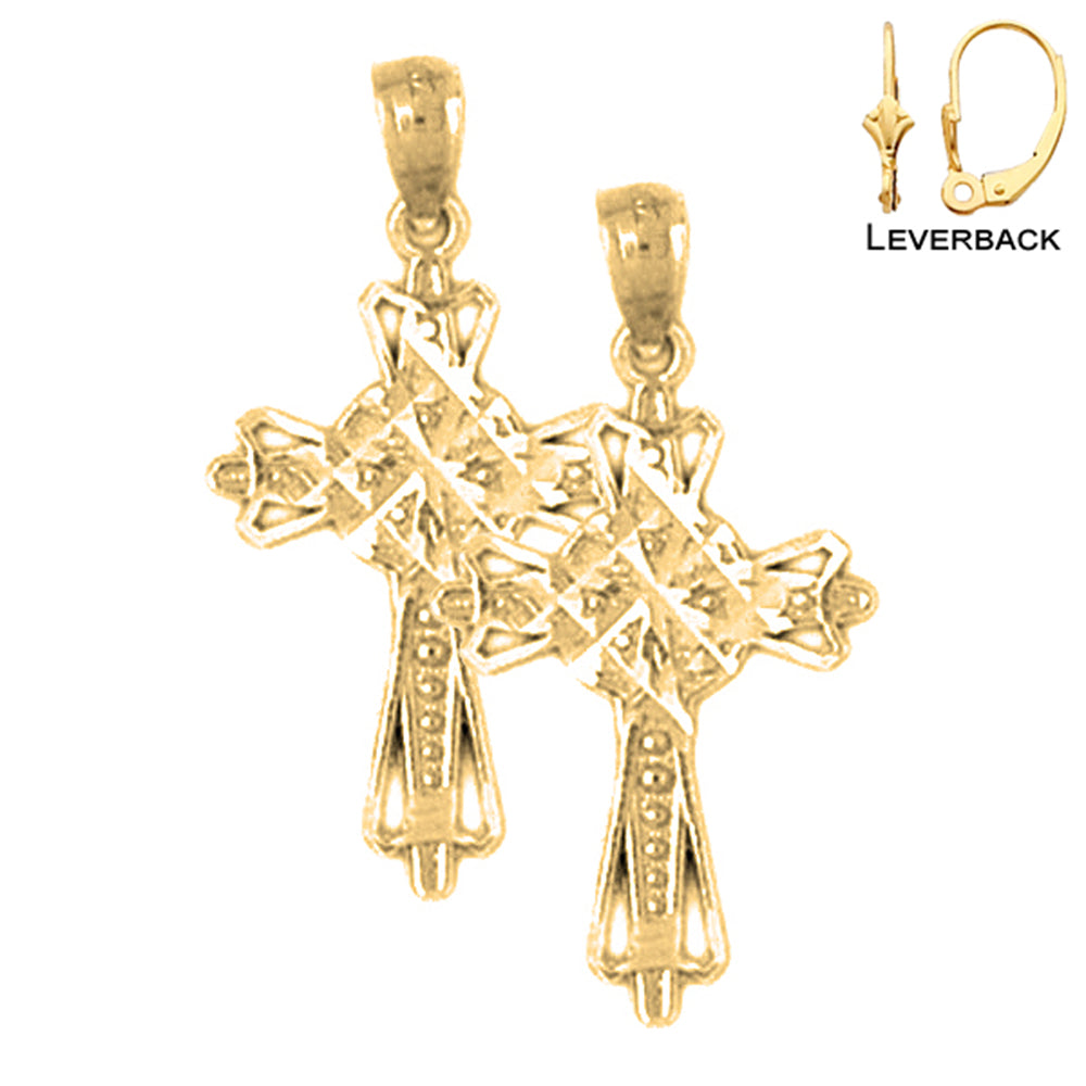 Presentamos nuestros exquisitos aretes cruzados de plata de ley de 26 mm, disponibles en su elección de chapado en oro blanco o amarillo. Estos impresionantes aretes son un verdadero testimonio de la belleza y la fe eternas.