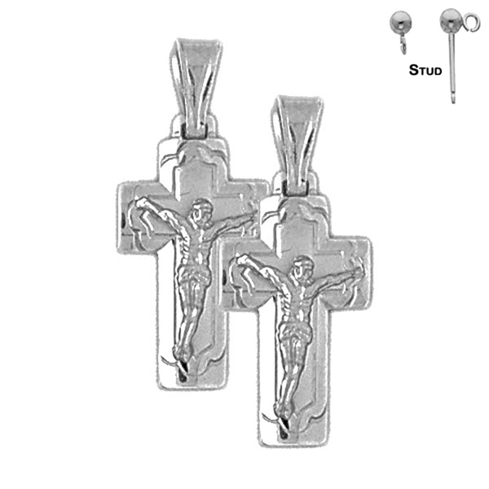 Diseñados y fabricados en los Estados Unidos, estos aretes presentan un diseño atemporal de crucifijo latino, que mide 27 mm de largo y 12 mm de ancho. El tamaño perfecto para hacer una declaración sin abrumar tu estilo.