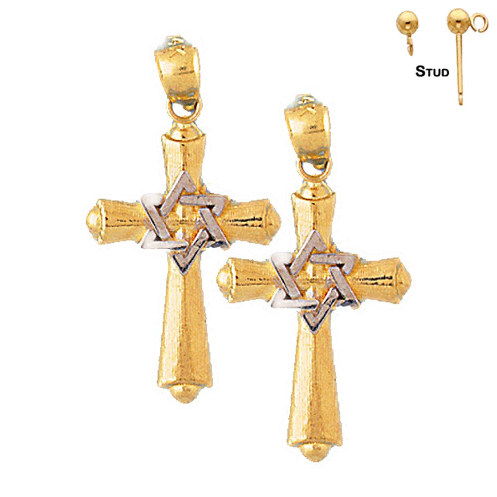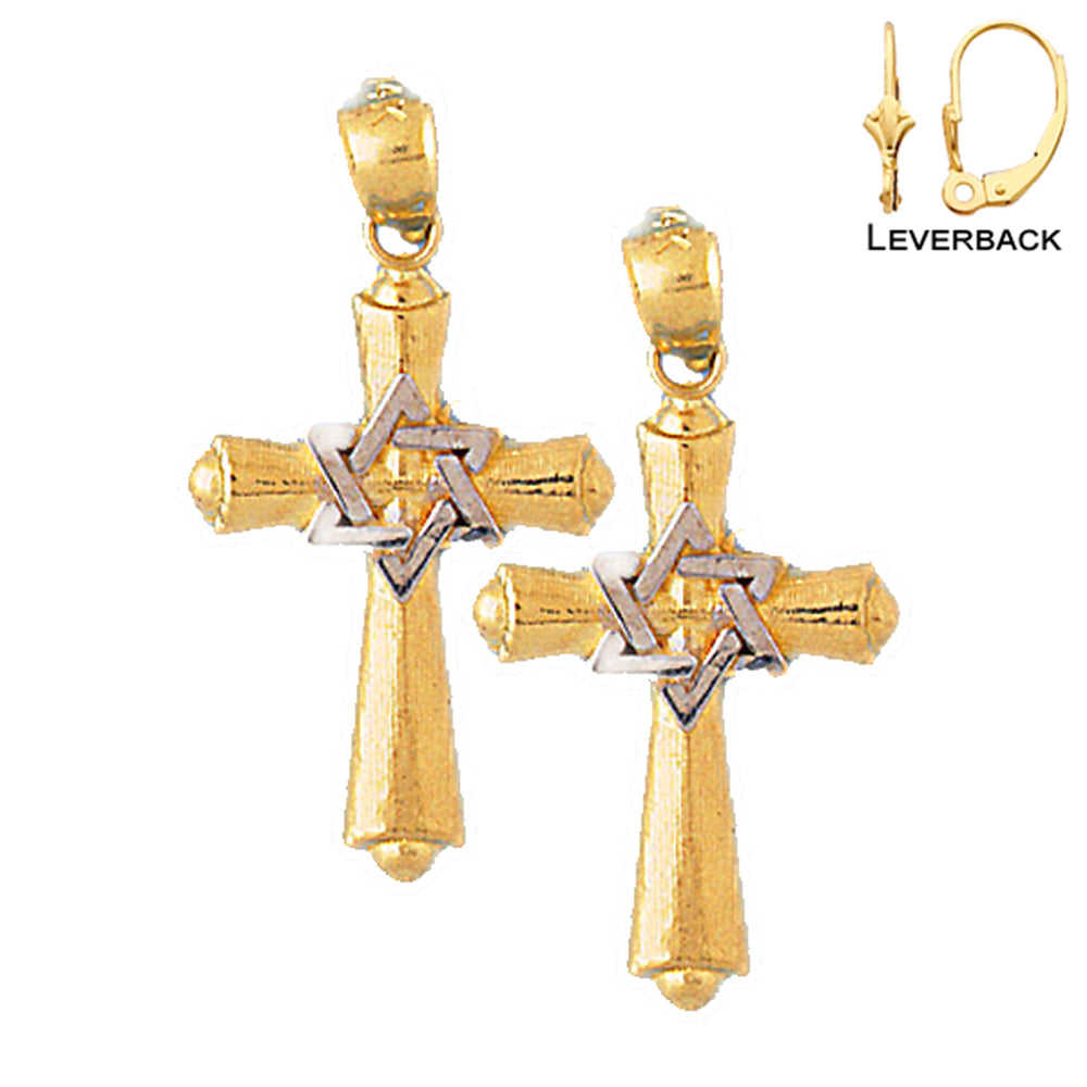 Presentamos nuestros exquisitos aretes de cruz con estrella de David de plata de ley de 29 mm, disponibles en su elección de chapado en oro blanco o amarillo. Estos impresionantes aretes son un verdadero testimonio de la belleza de la fe y el estilo.