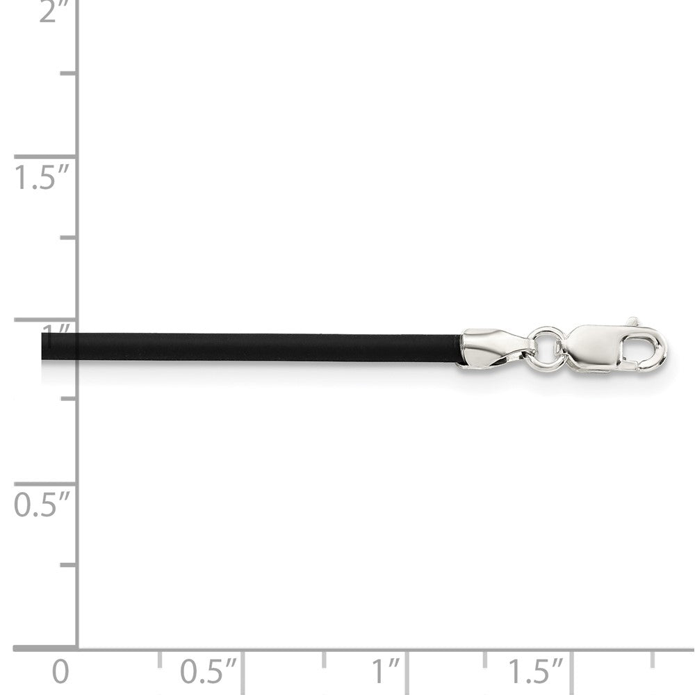 Sterling Silver 2mm Black Rubber Cord Necklace