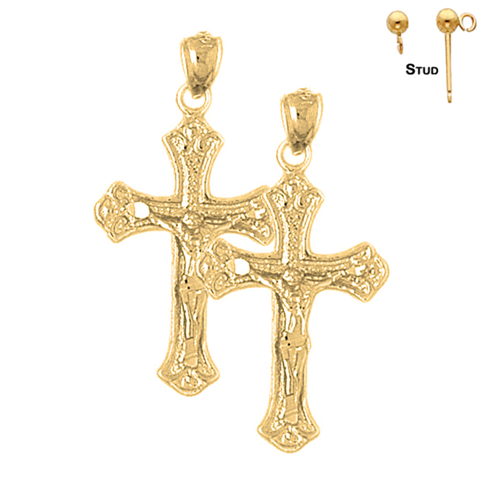 Presentamos nuestros exquisitos aretes de crucifijo con brotes de plata de ley de 33 mm, disponibles en opciones chapadas en oro blanco y amarillo. Estos impresionantes aretes son un verdadero testimonio de fe y estilo, lo que los convierte en el accesorio perfecto para cualquier ocasión.