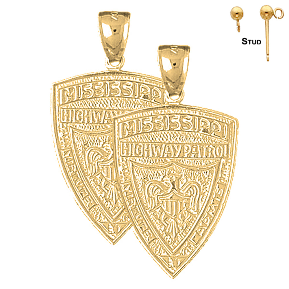 Eleve su estilo y muestre su amor por Mississippi con nuestros aretes de plata de ley de 33 mm de la Patrulla de Carreteras de Mississippi. Agréguelos a su carrito hoy y experimente la combinación perfecta de elegancia y artesanía.