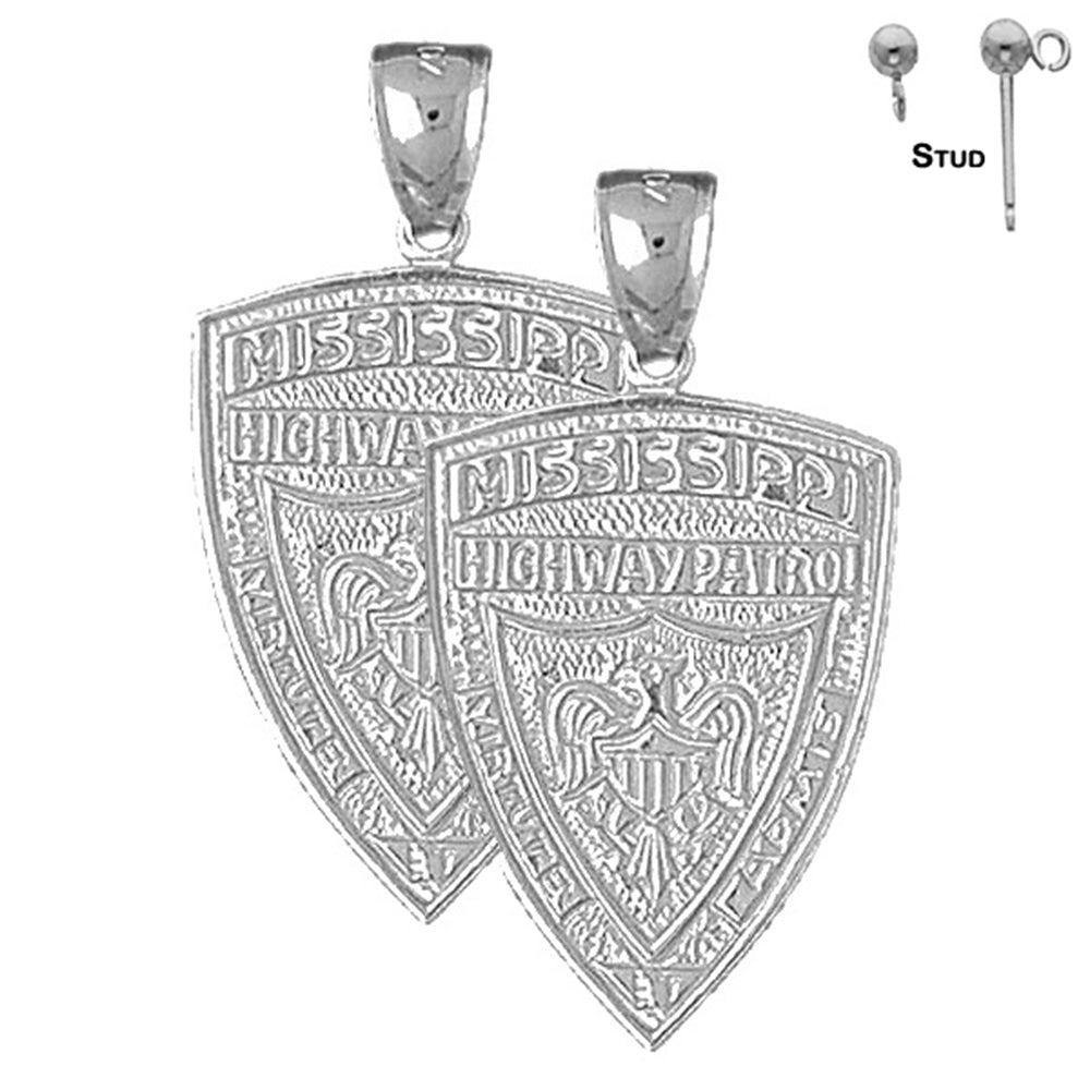 Presentamos nuestros impresionantes aretes de plata de ley de 33 mm de la Patrulla de Carreteras de Mississippi, disponibles en su elección de chapado en oro blanco o amarillo. Estos aretes son un verdadero testimonio de artesanía y estilo, perfectos para quienes aprecian la joyería de calidad.