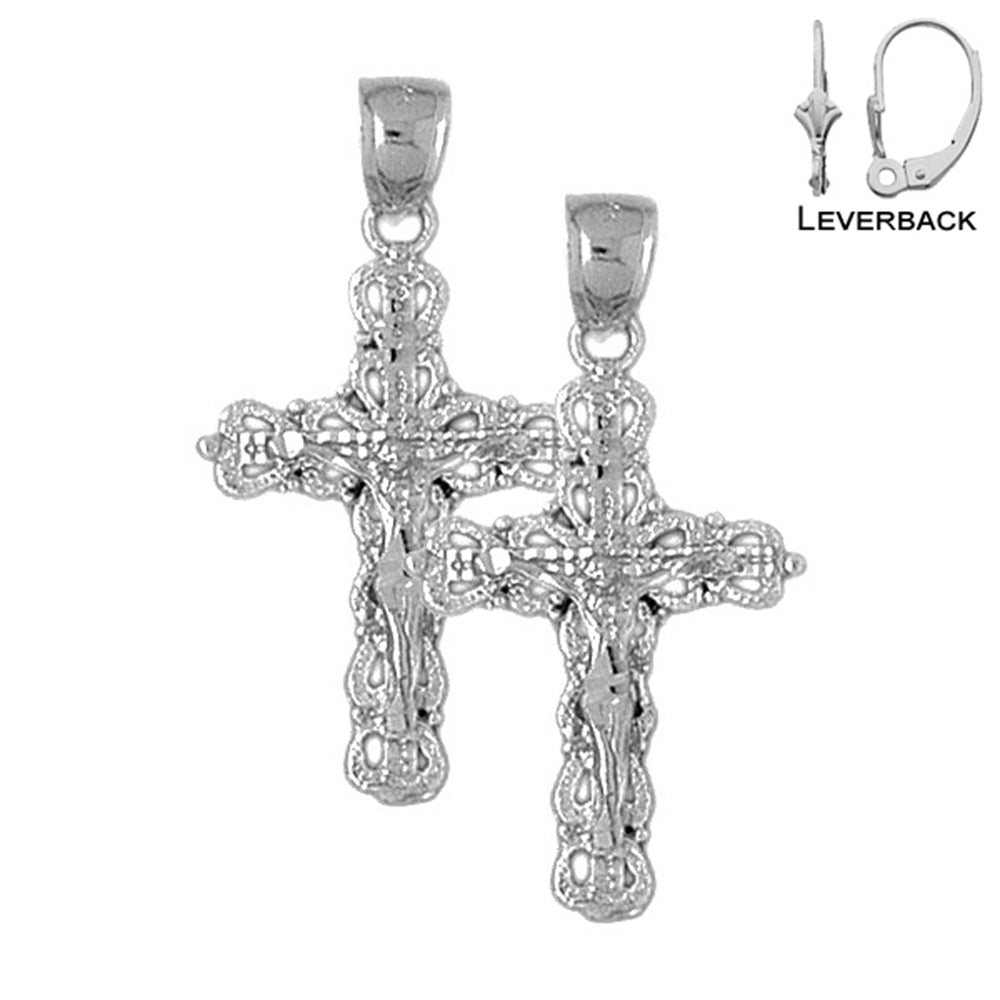 Presentamos nuestros exquisitos aretes de crucifijo con brotes de plata de ley de 35 mm, disponibles en opciones chapadas en oro blanco o amarillo. Elaborados con precisión y pasión, estos aretes son un verdadero testimonio de la fina artesanía.