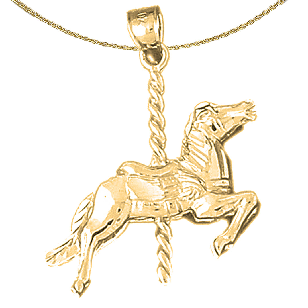 Yellow Gold-plated Silver 3D Carousel Horse Pendant