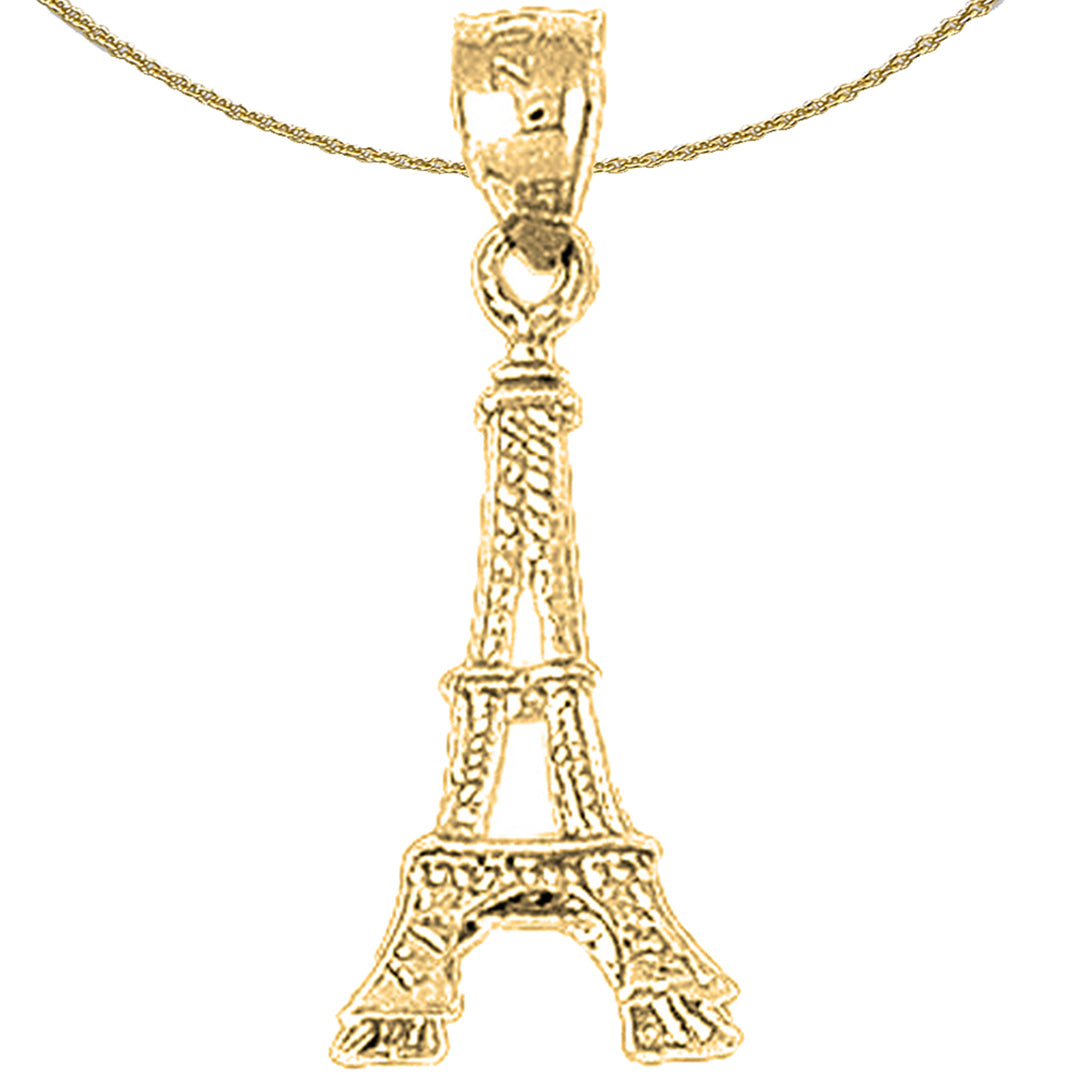 Colgante de plata de ley con forma de Torre Eiffel en 3D (chapado en rodio o oro amarillo)