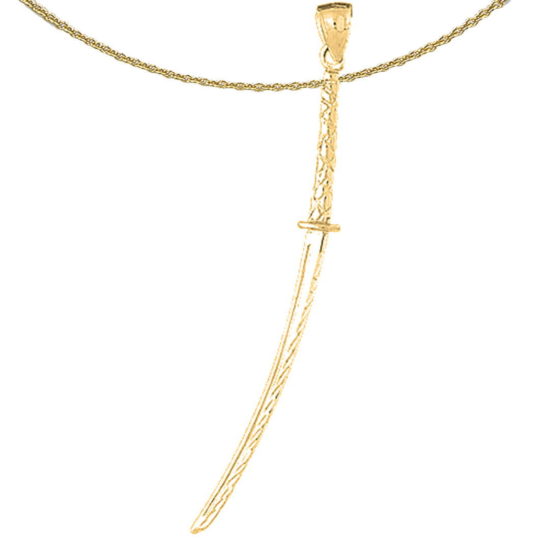 Yellow Gold-plated Silver 3D Ninja Sword Pendant