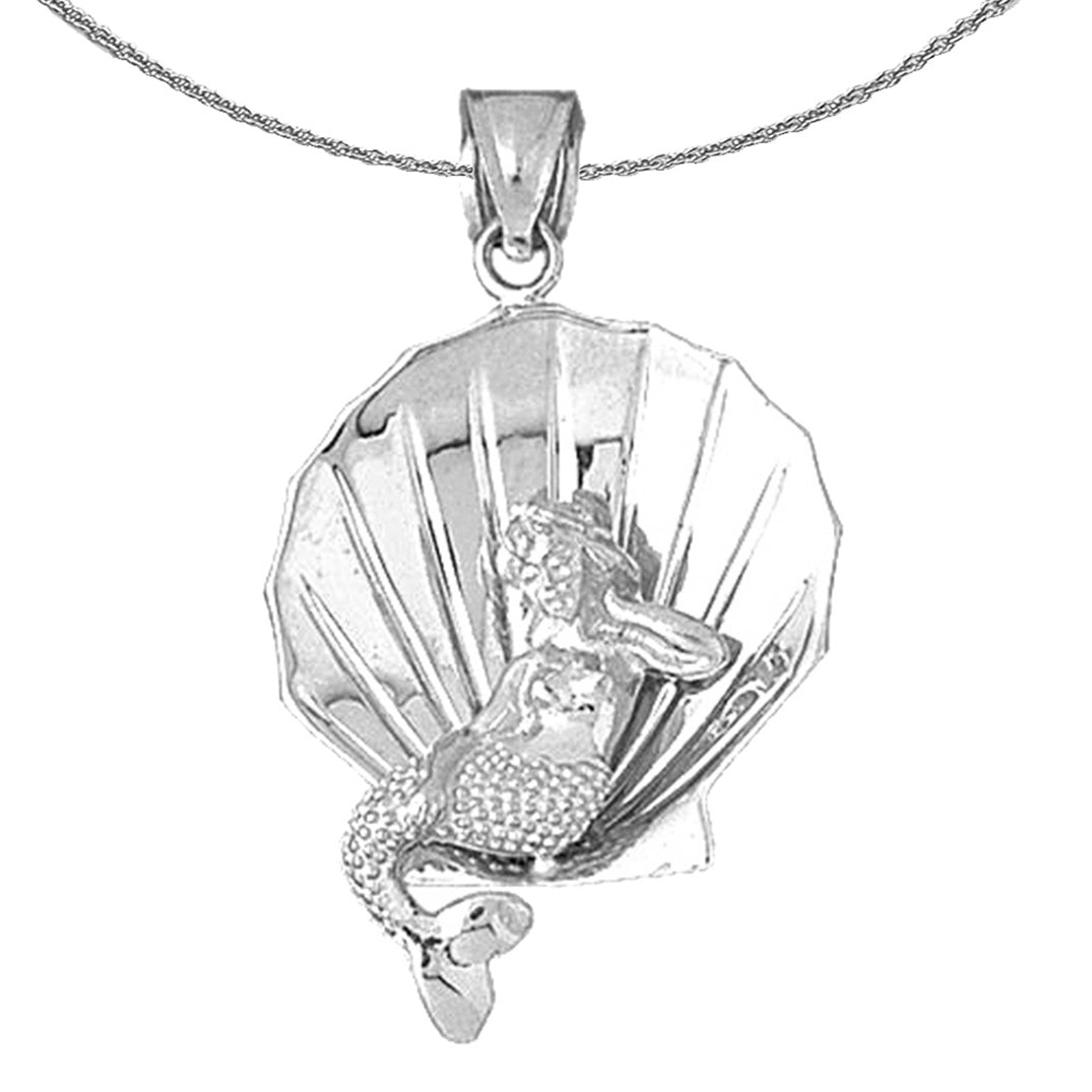 Concha 3D de plata de ley con colgante de sirena (bañada en rodio o oro amarillo)