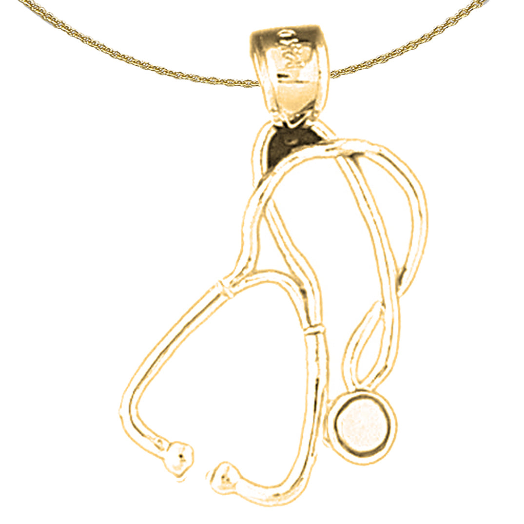 Yellow Gold-plated Silver 3D Stethoscope Pendant