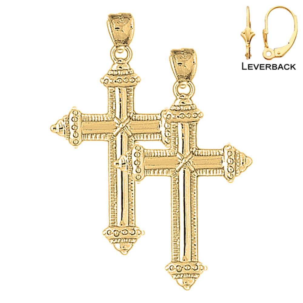 Para adaptarse a su estilo personal, ofrecemos tres estilos de aretes diferentes para estos impresionantes aretes cruzados. Los clásicos aretes, también conocidos como aretes, presentan una bola redonda con un tallo recto que atraviesa la oreja y se mantiene en su lugar mediante un respaldo en forma de mariposa. Los aretes con bisagras, también conocidos como cierres de palanca, tienen una carcasa curva que se dobla y se cierra detrás de la oreja, brindando comodidad y seguridad. Y por último, los pendientes de anzuelo, también conocidos como alambre francés, presentan un extremo en forma de gancho que pasa a través de la oreja perforada, con un elegante adorno colgando del otro extremo.